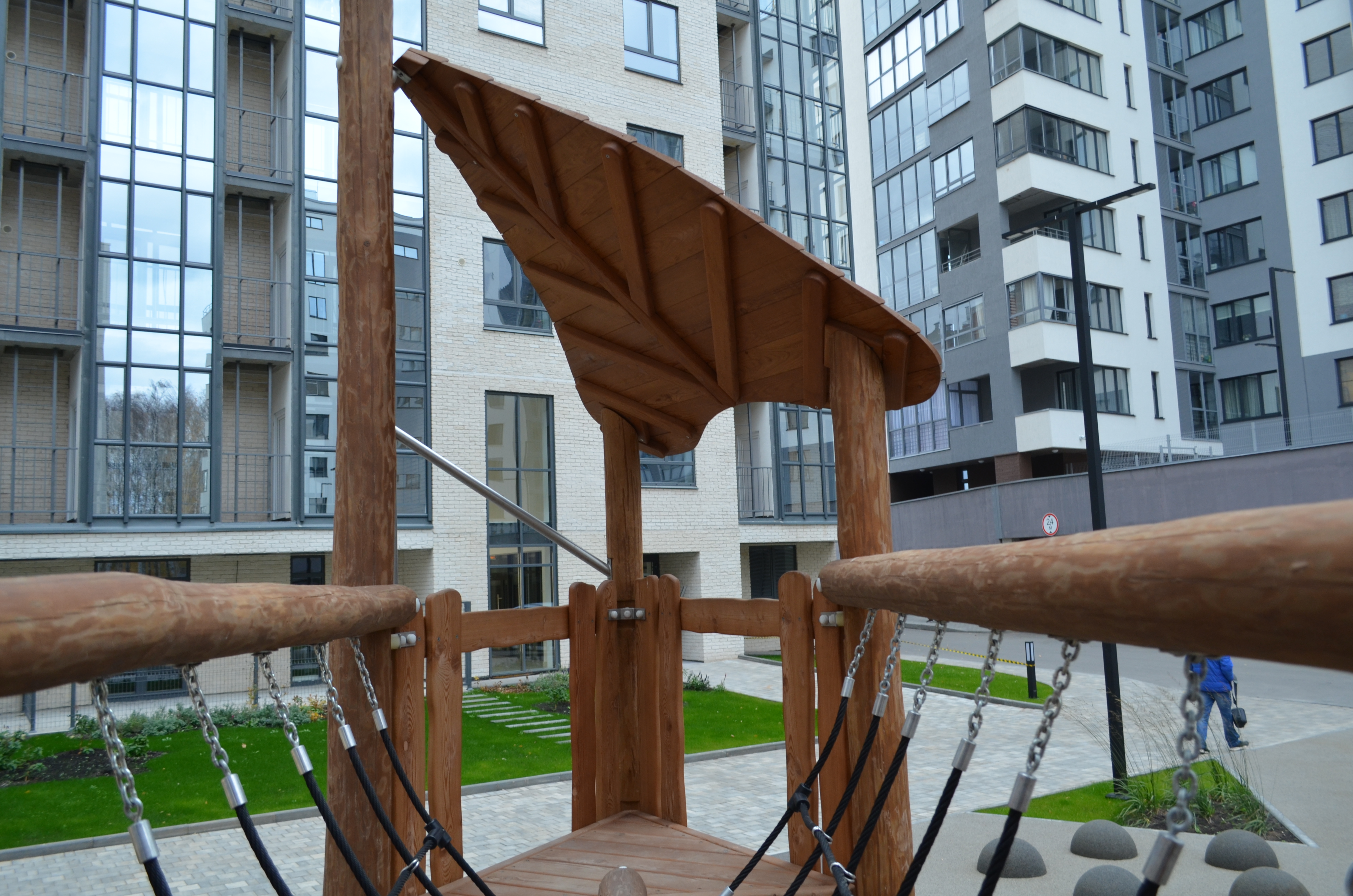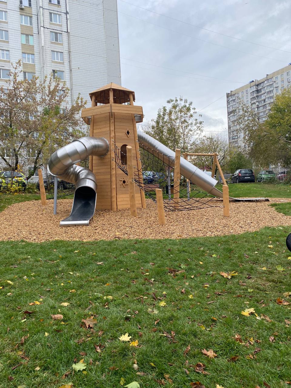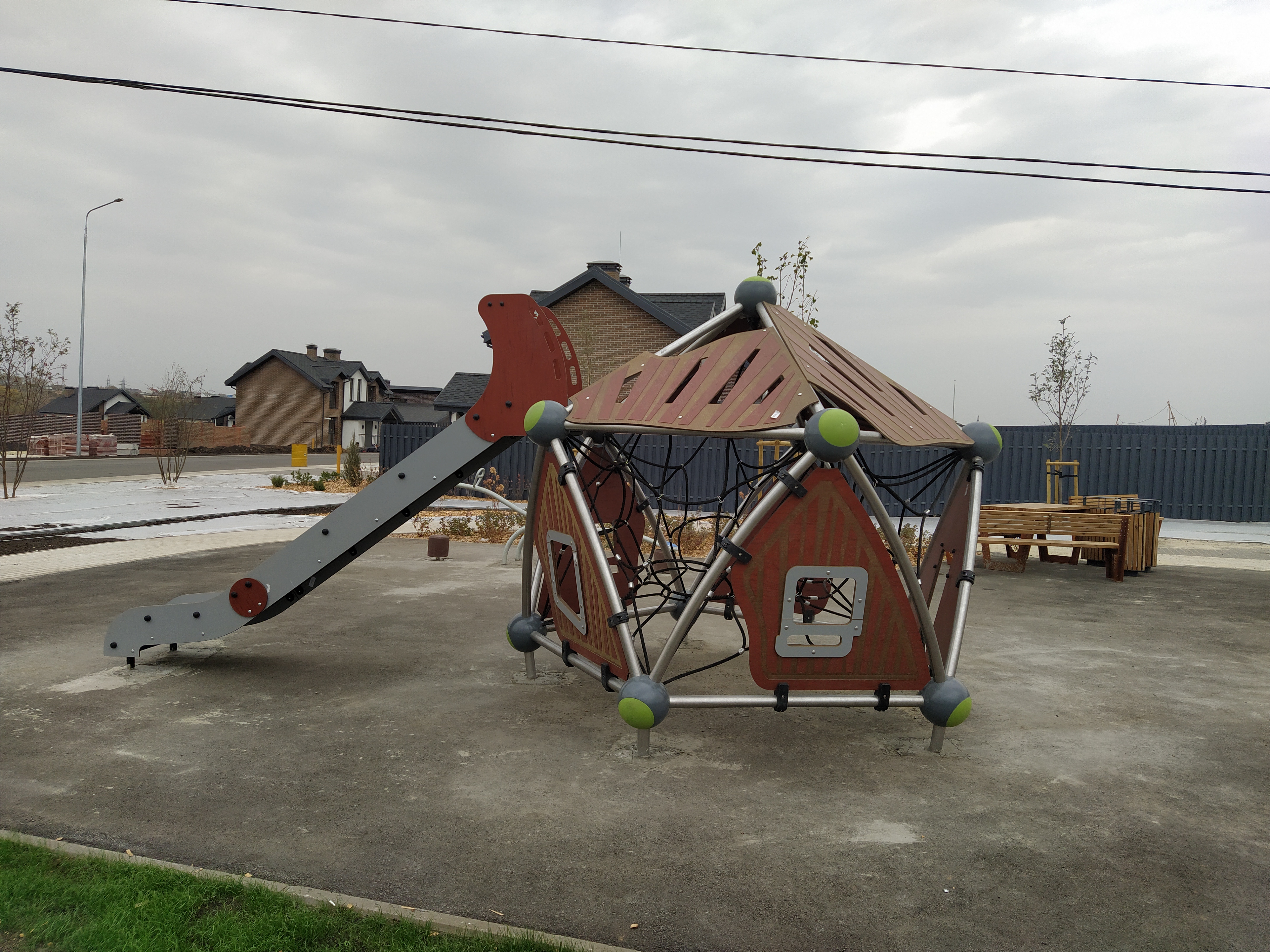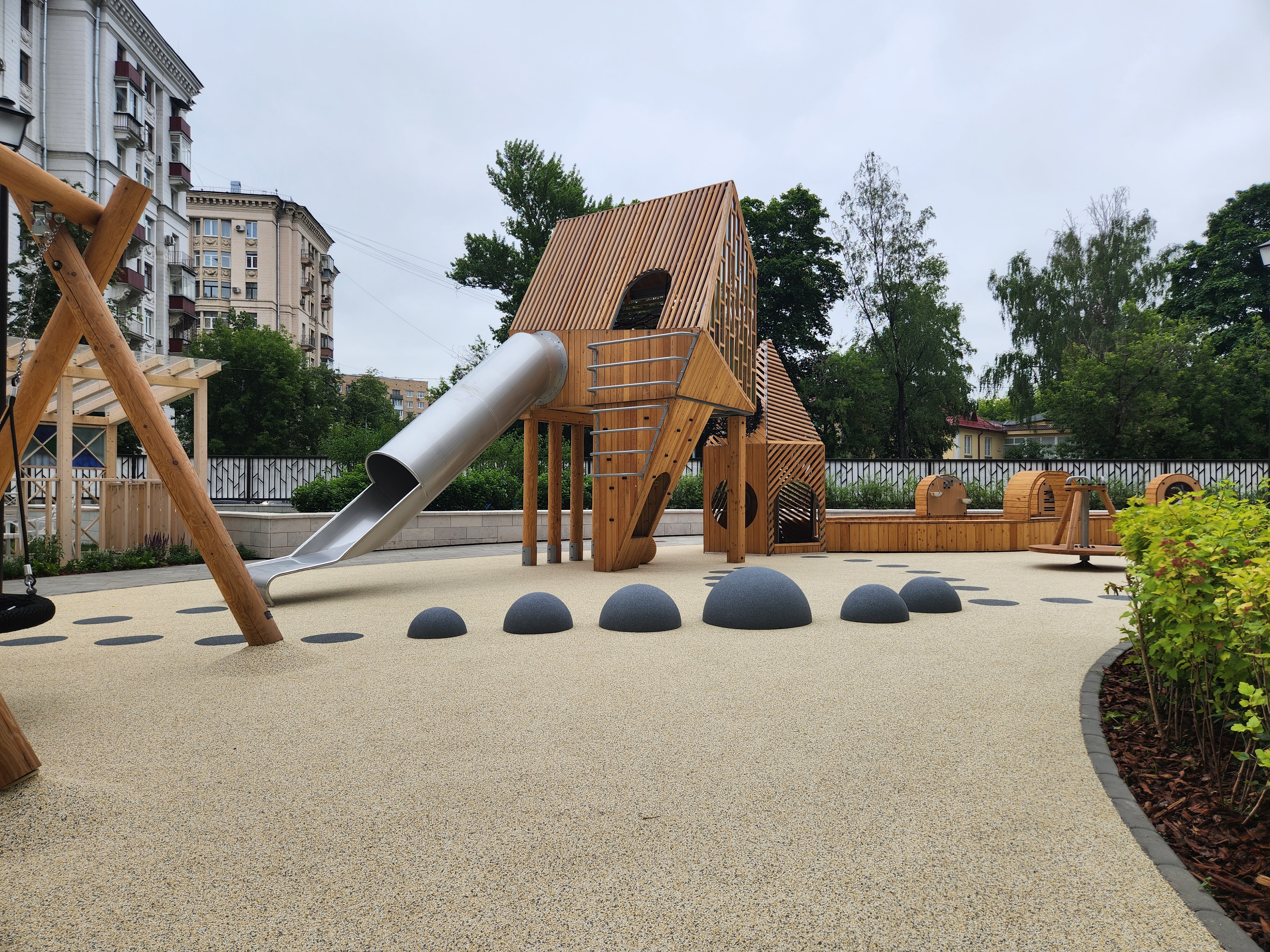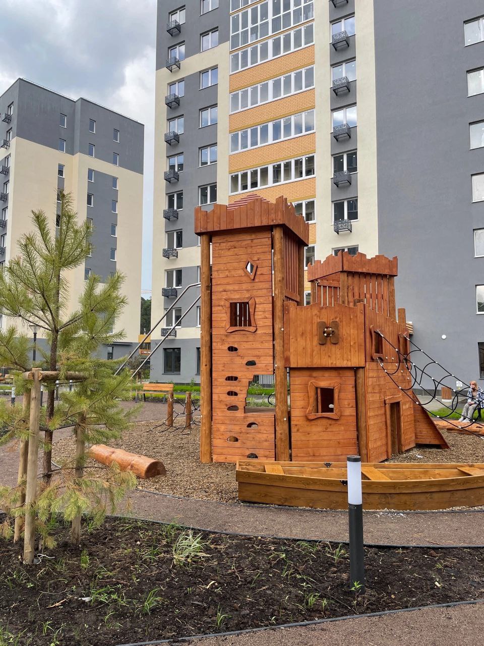 - Интерактивный дизайн: Игровые домики, крепости и замки должны стимулировать воображение и ролевые игры детей. Это могут быть тематические элементы, такие как башни, мостики, ступени и смотровые площадки.