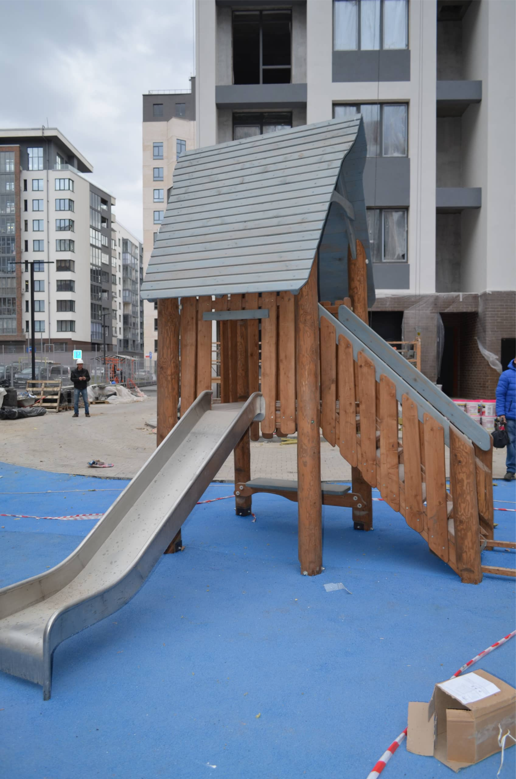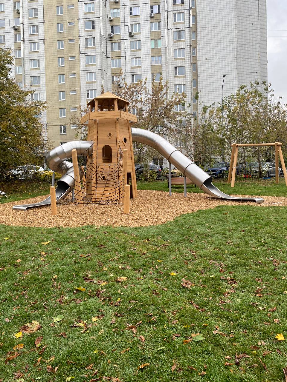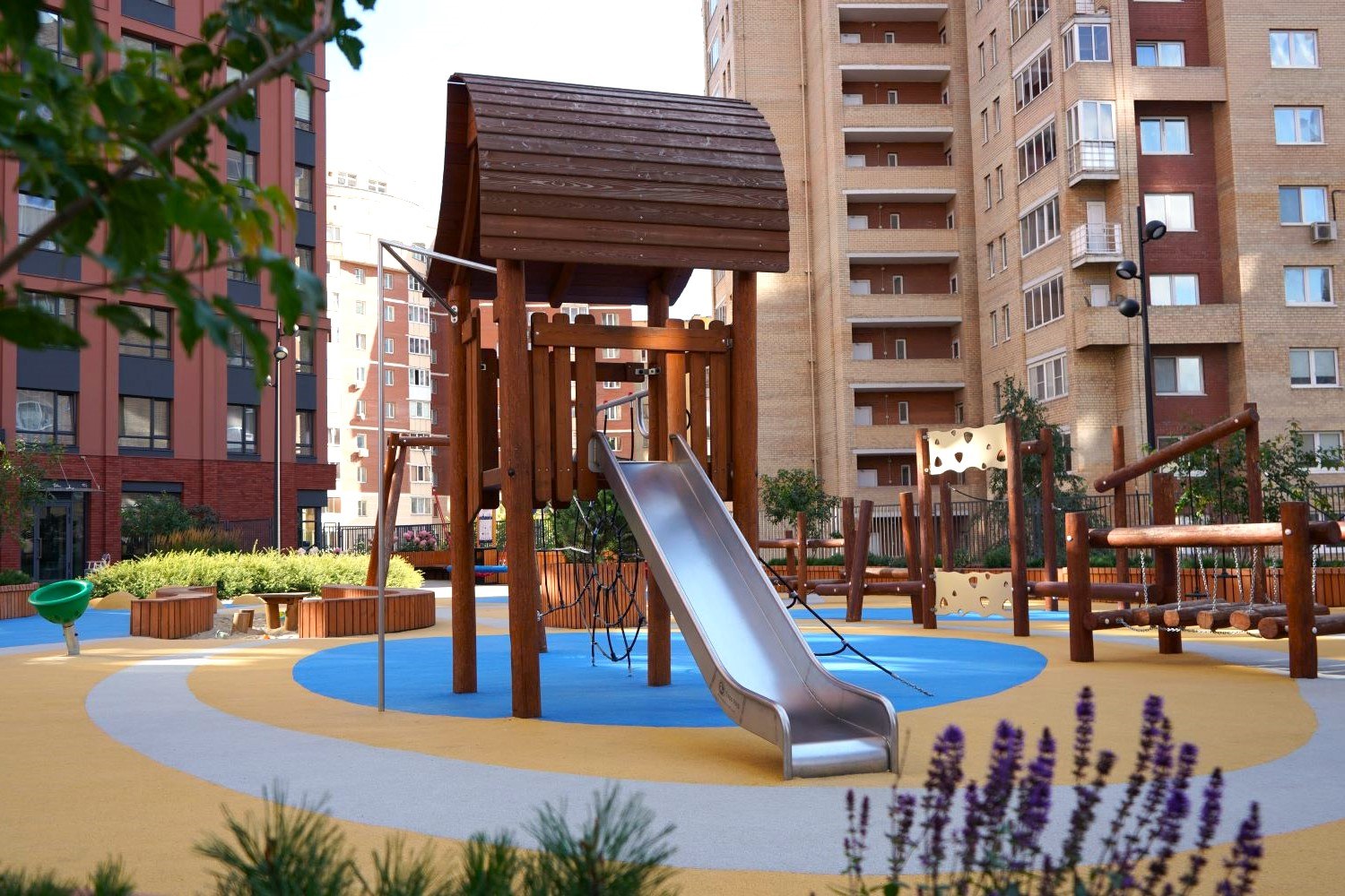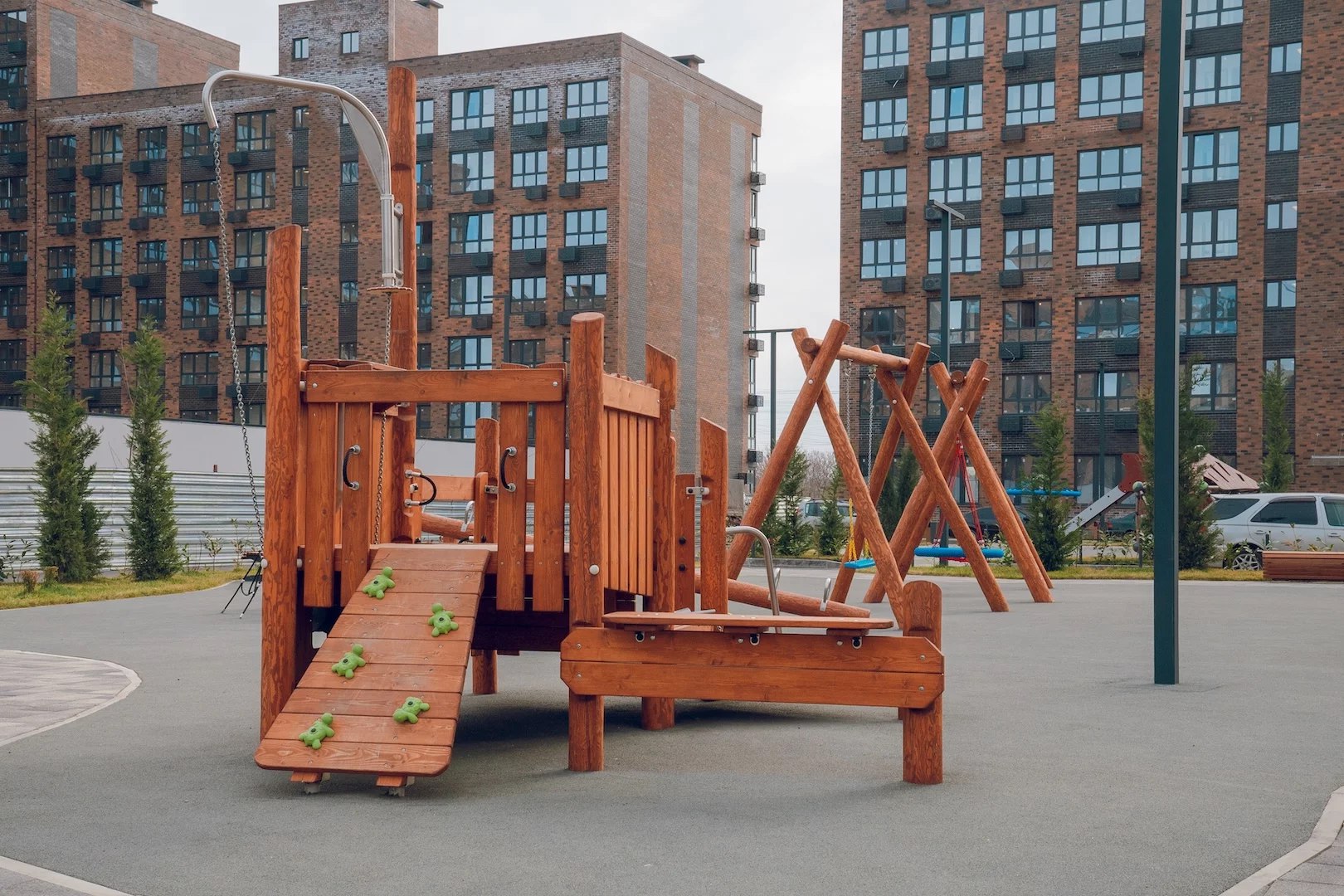 - Интерактивный дизайн: Игровые домики, крепости и замки должны стимулировать воображение и ролевые игры детей. Это могут быть тематические элементы, такие как башни, мостики, ступени и смотровые площадки.