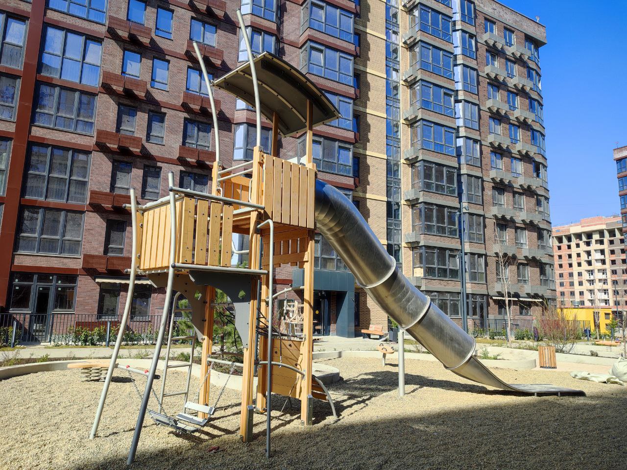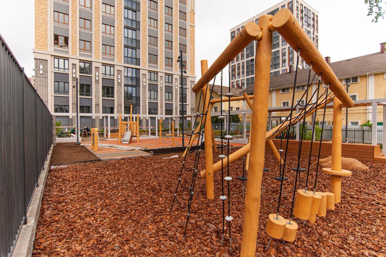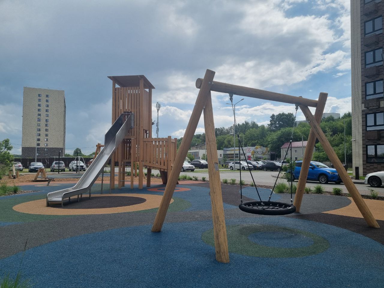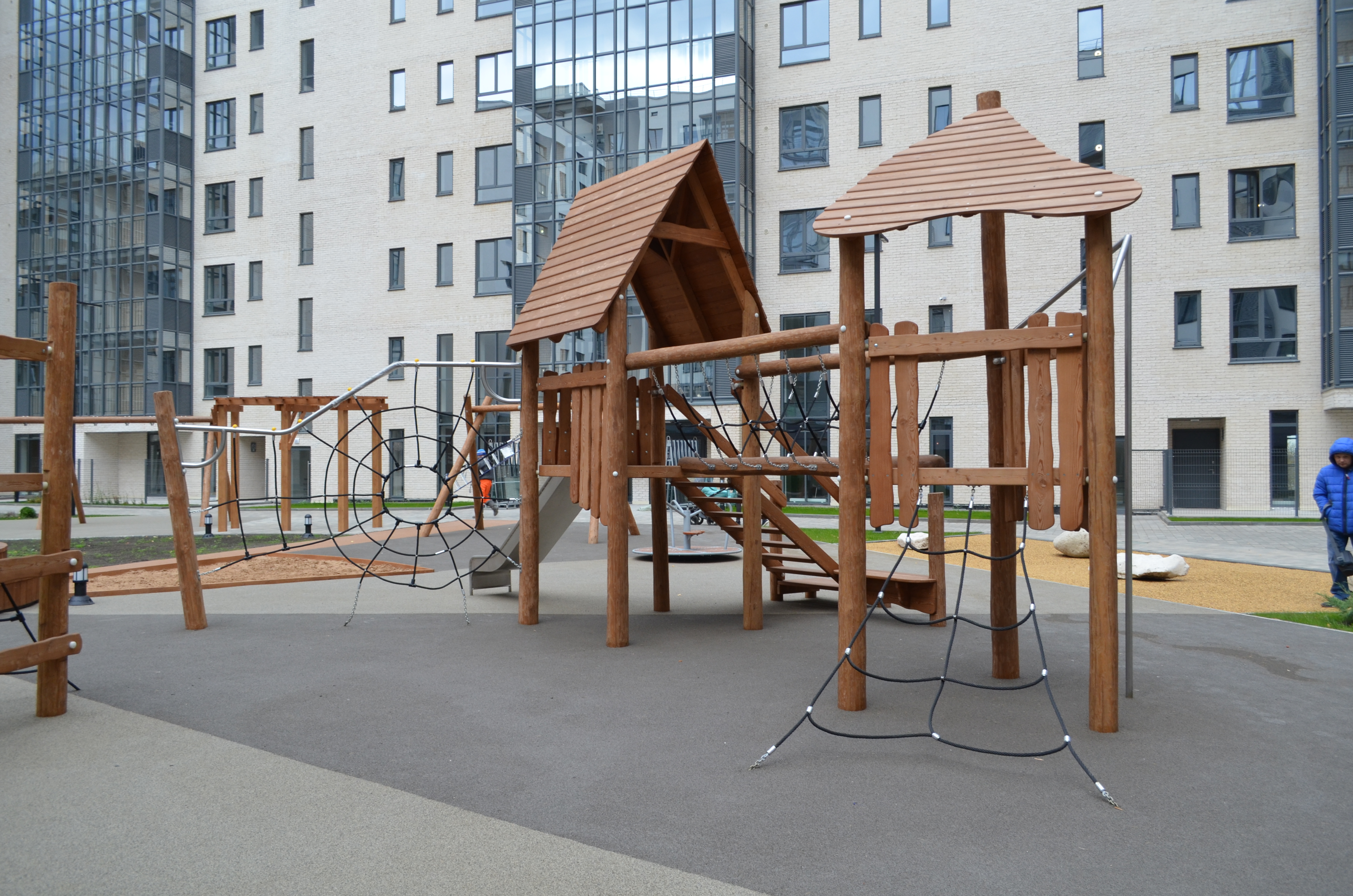 - Интерактивный дизайн: Игровые домики, крепости и замки должны стимулировать воображение и ролевые игры детей. Это могут быть тематические элементы, такие как башни, мостики, ступени и смотровые площадки.