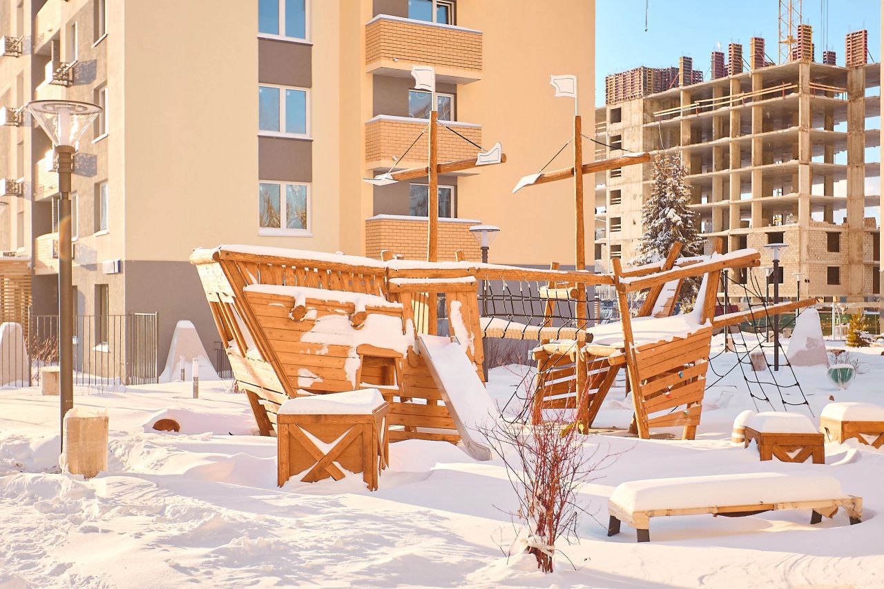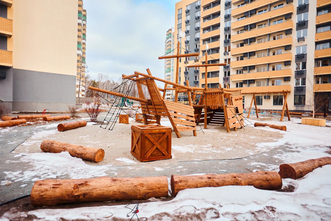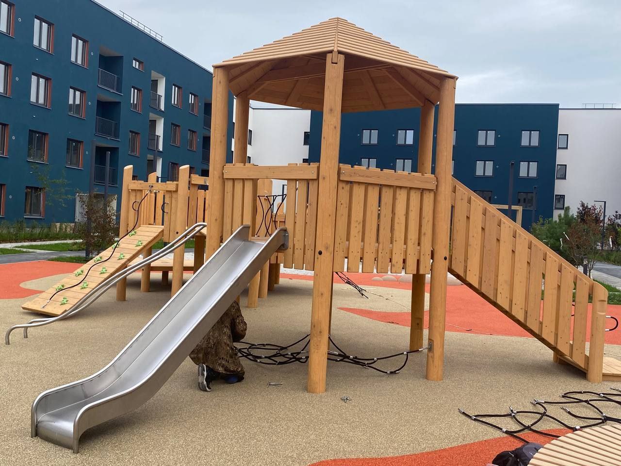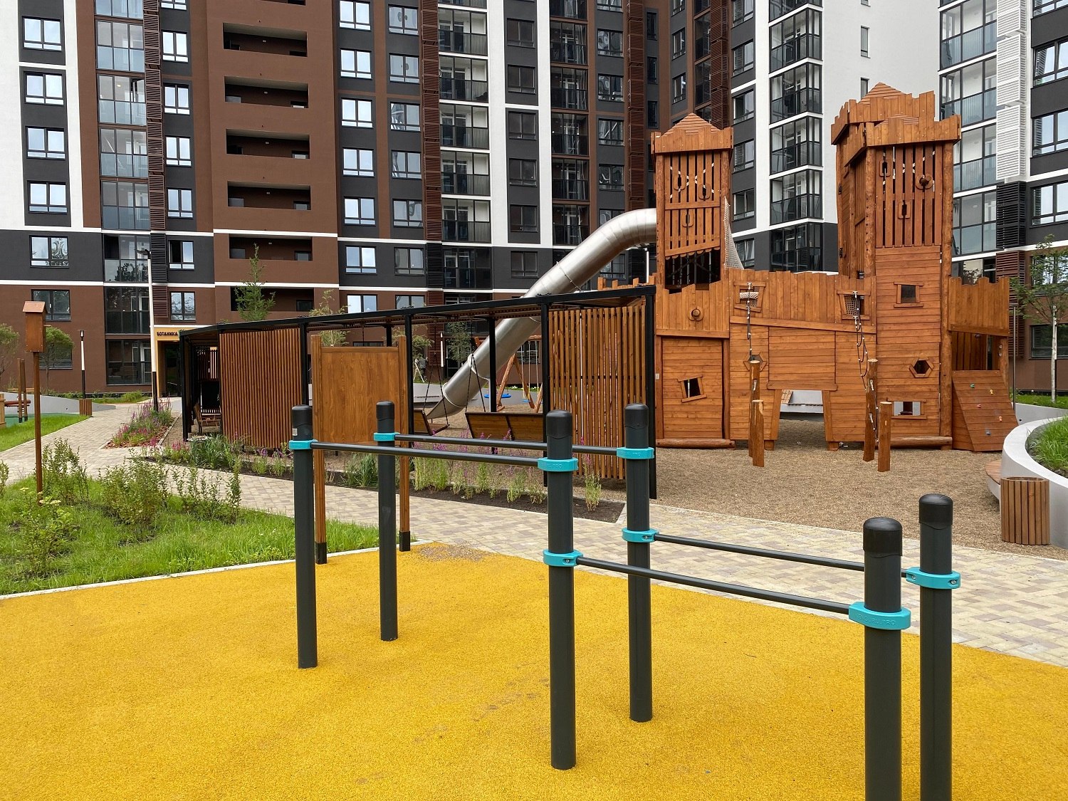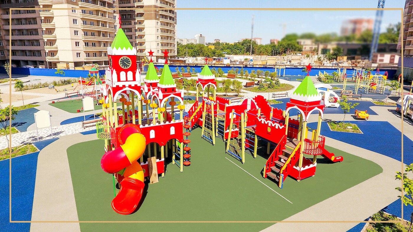 - Интерактивный дизайн: Игровые домики, крепости и замки должны стимулировать воображение и ролевые игры детей. Это могут быть тематические элементы, такие как башни, мостики, ступени и смотровые площадки.