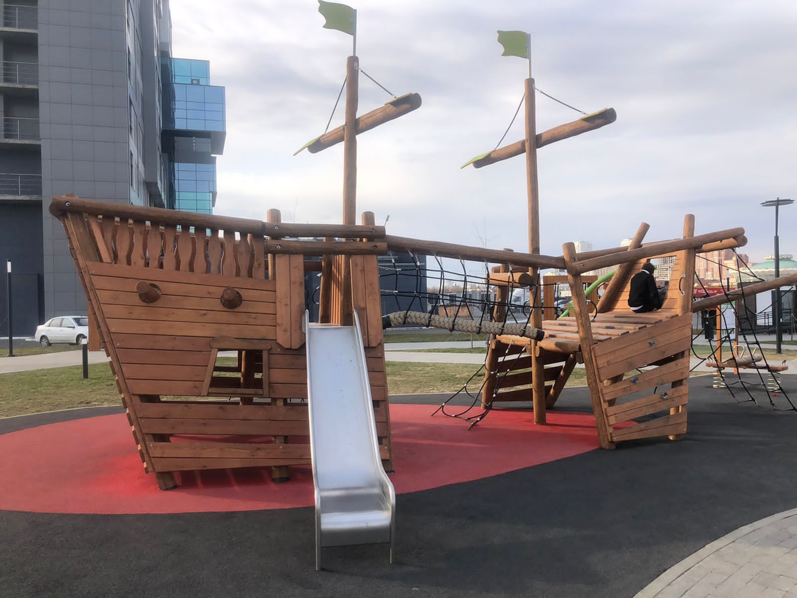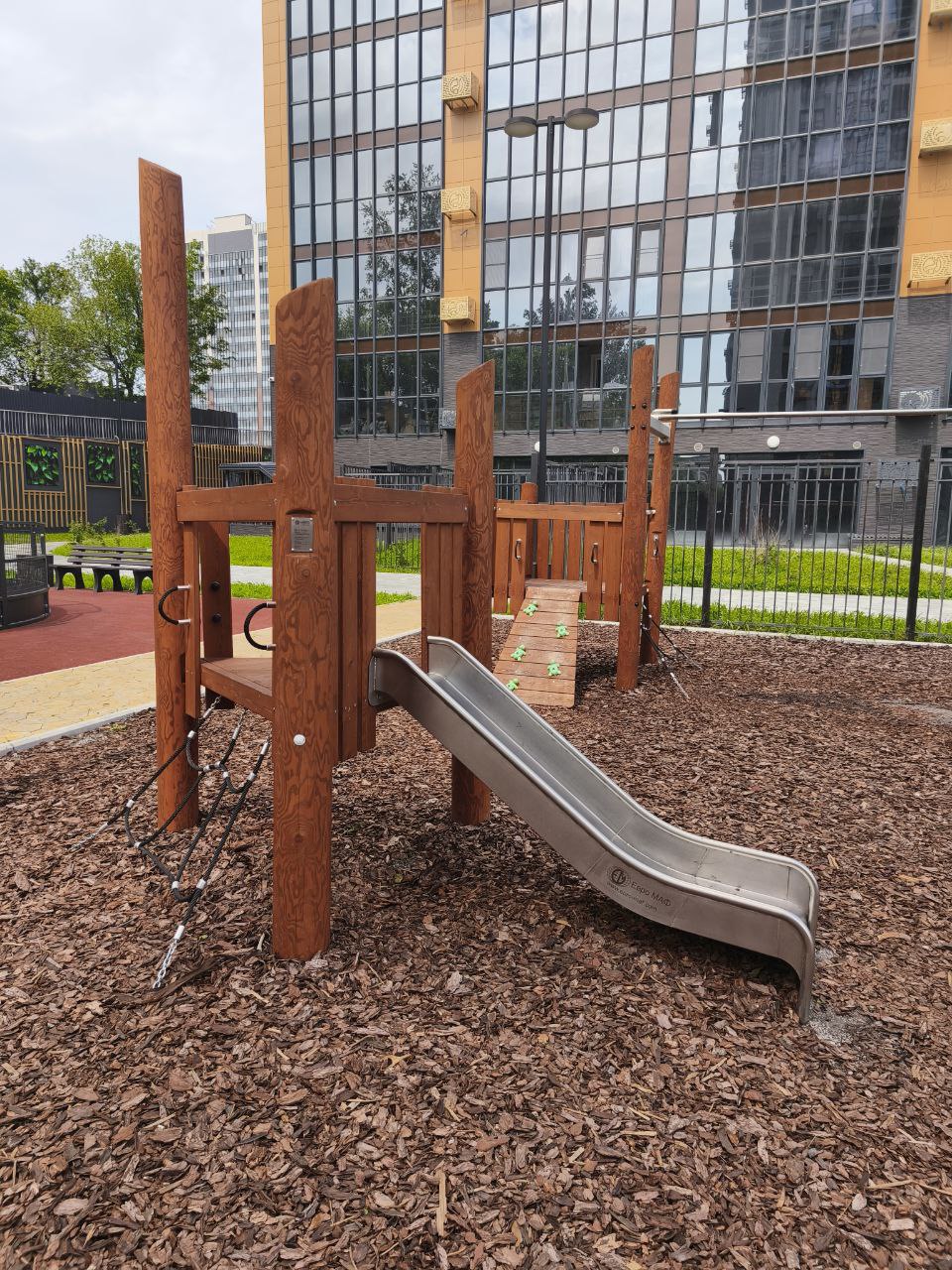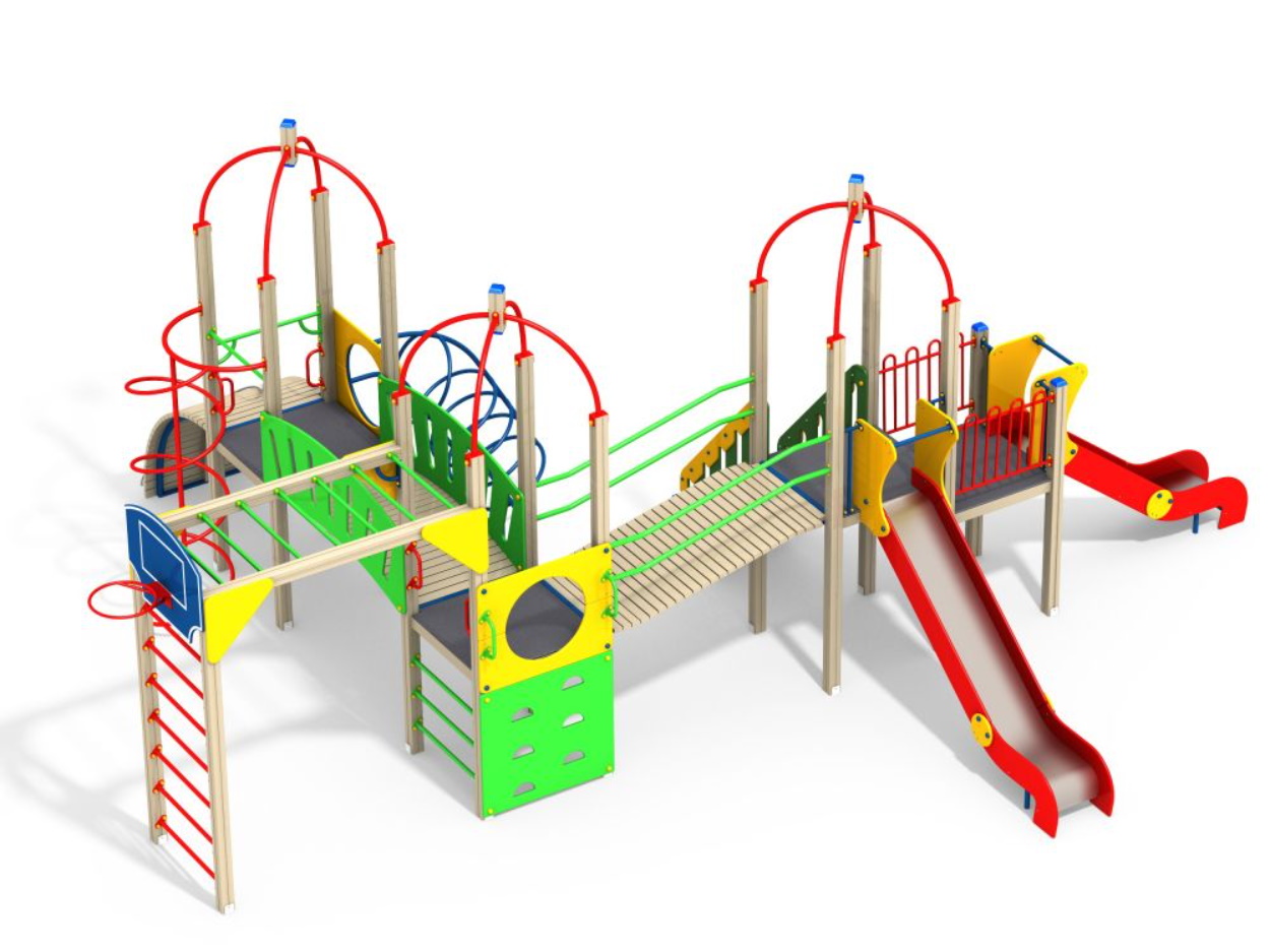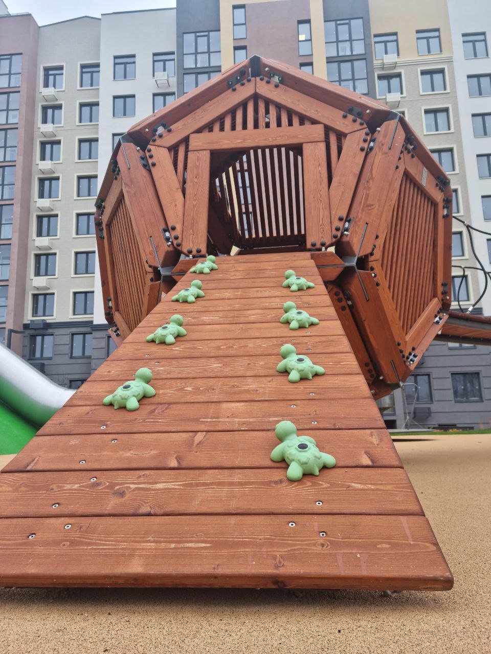 - Эргономичность: Все элементы должны быть удобными для использования детьми, включая высоту поручней, ширину ступенек и размеры игровых зон.