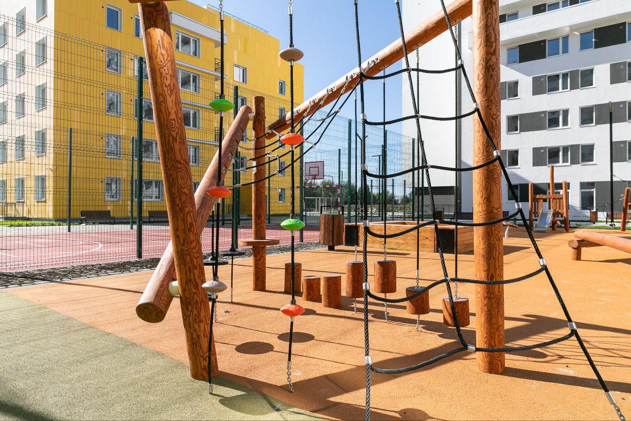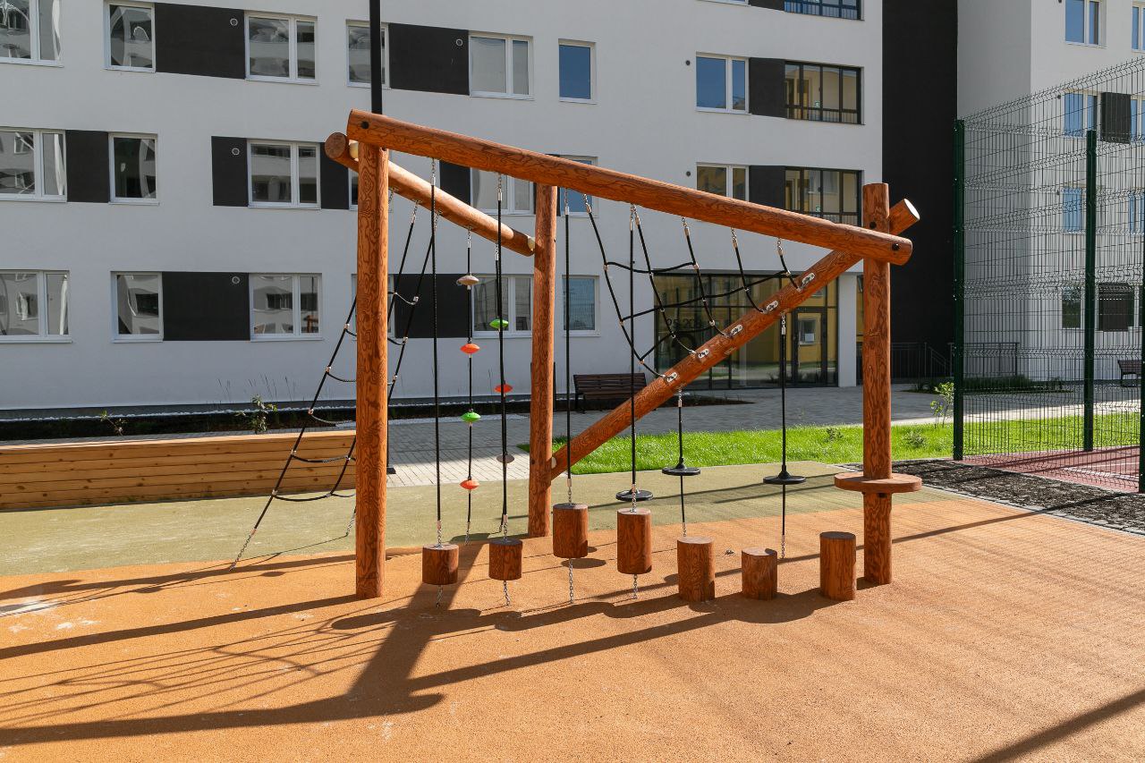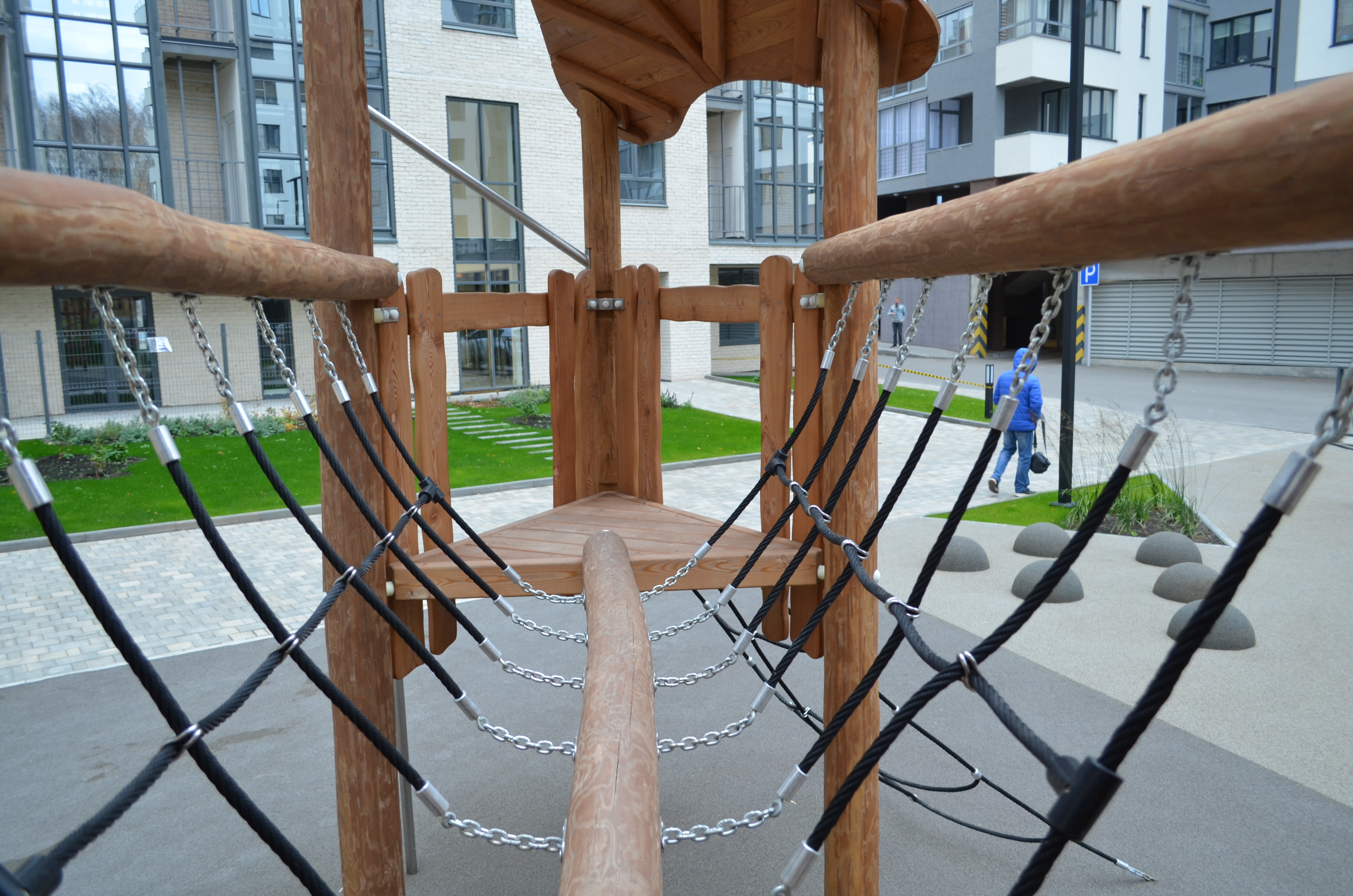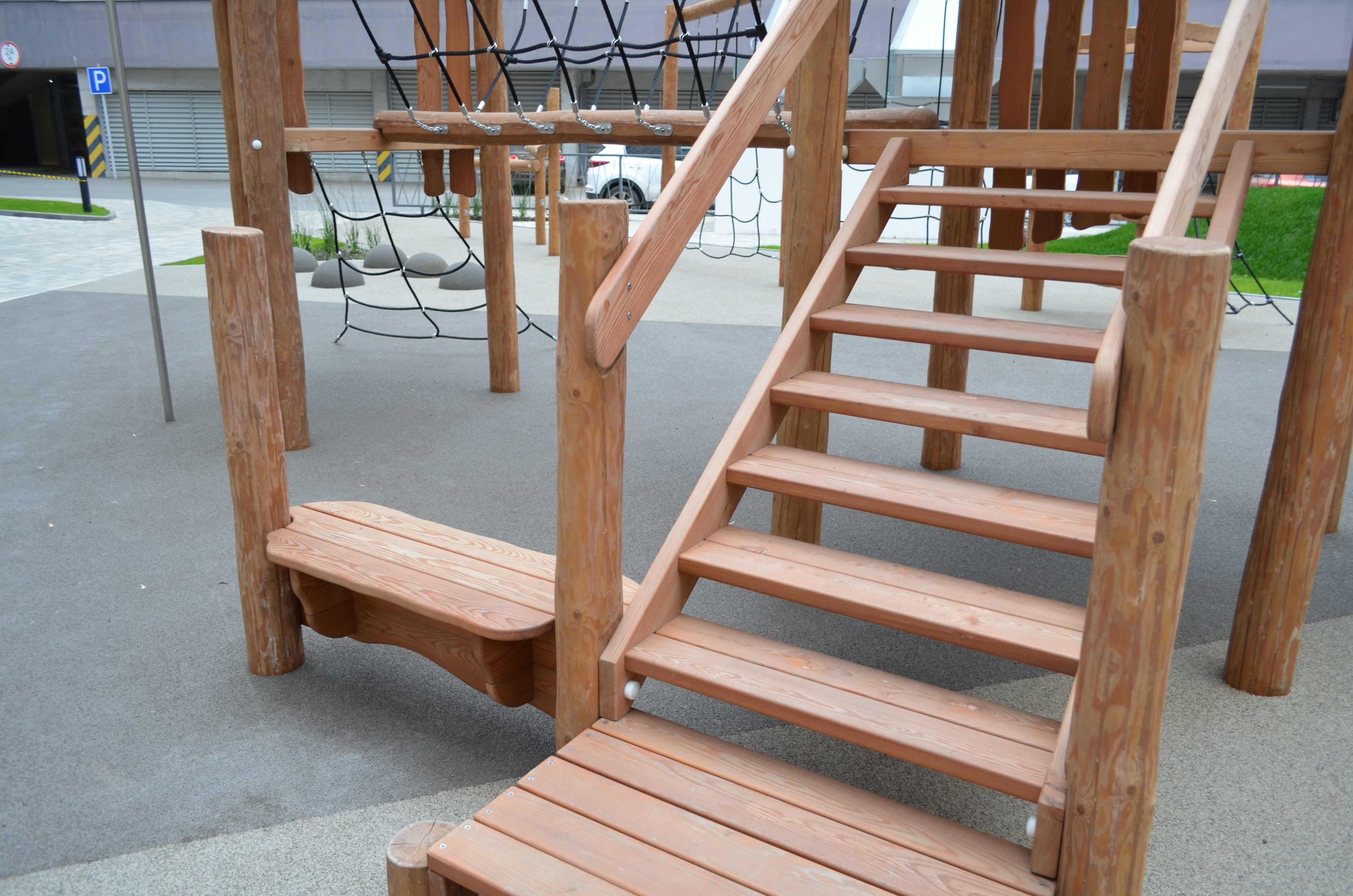 - Эргономичность: Все элементы должны быть удобными для использования детьми, включая высоту поручней, ширину ступенек и размеры игровых зон.