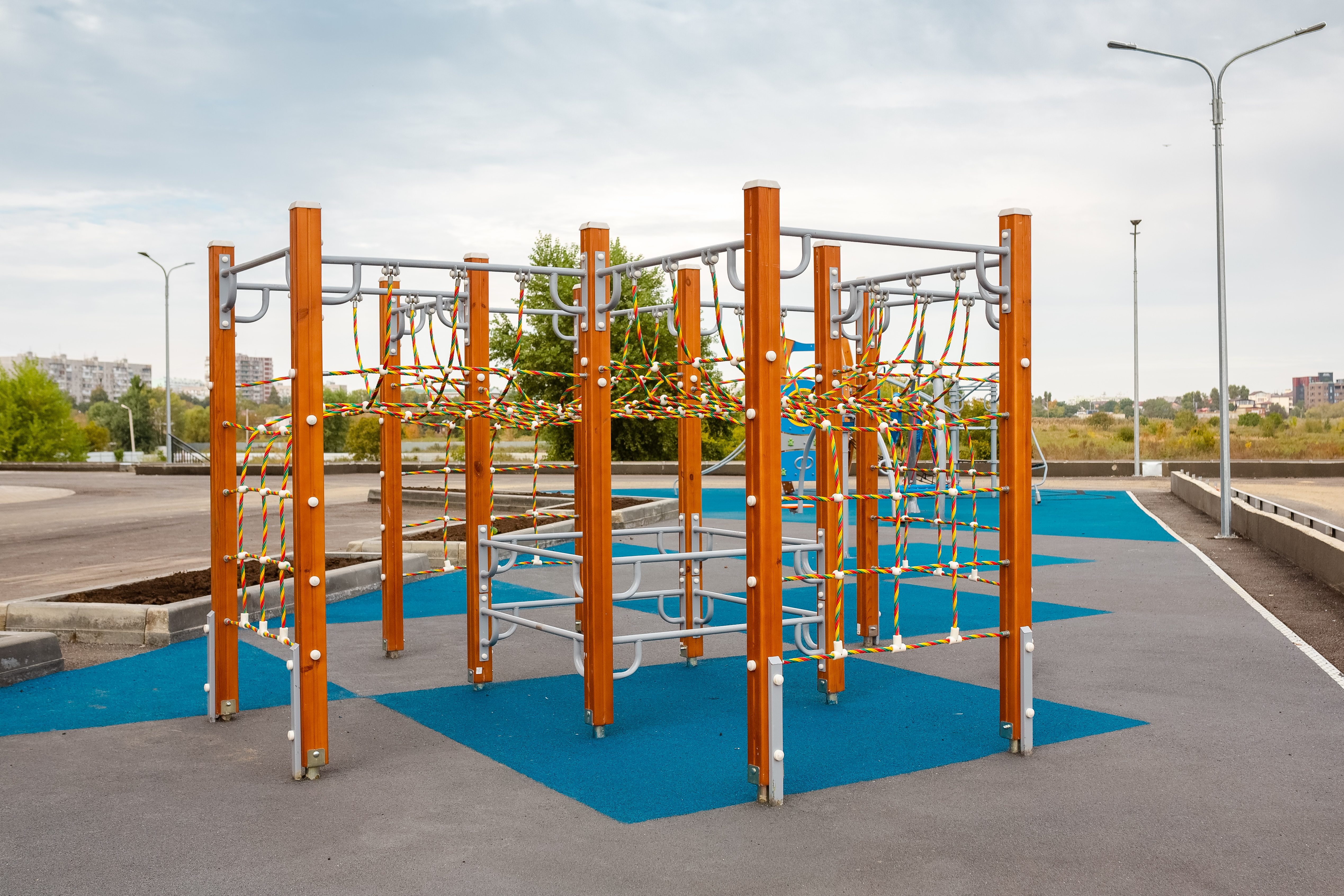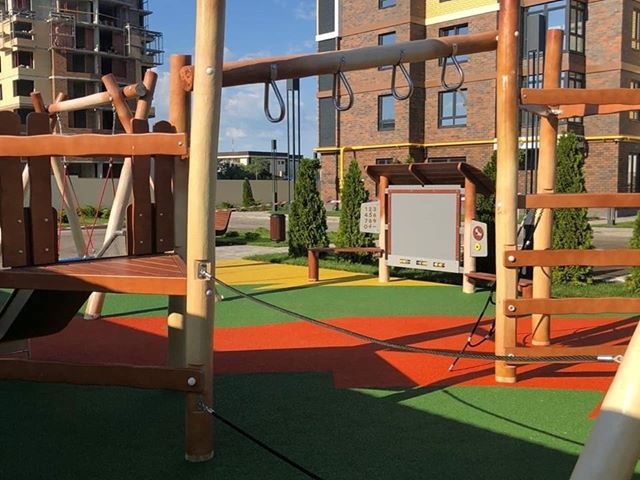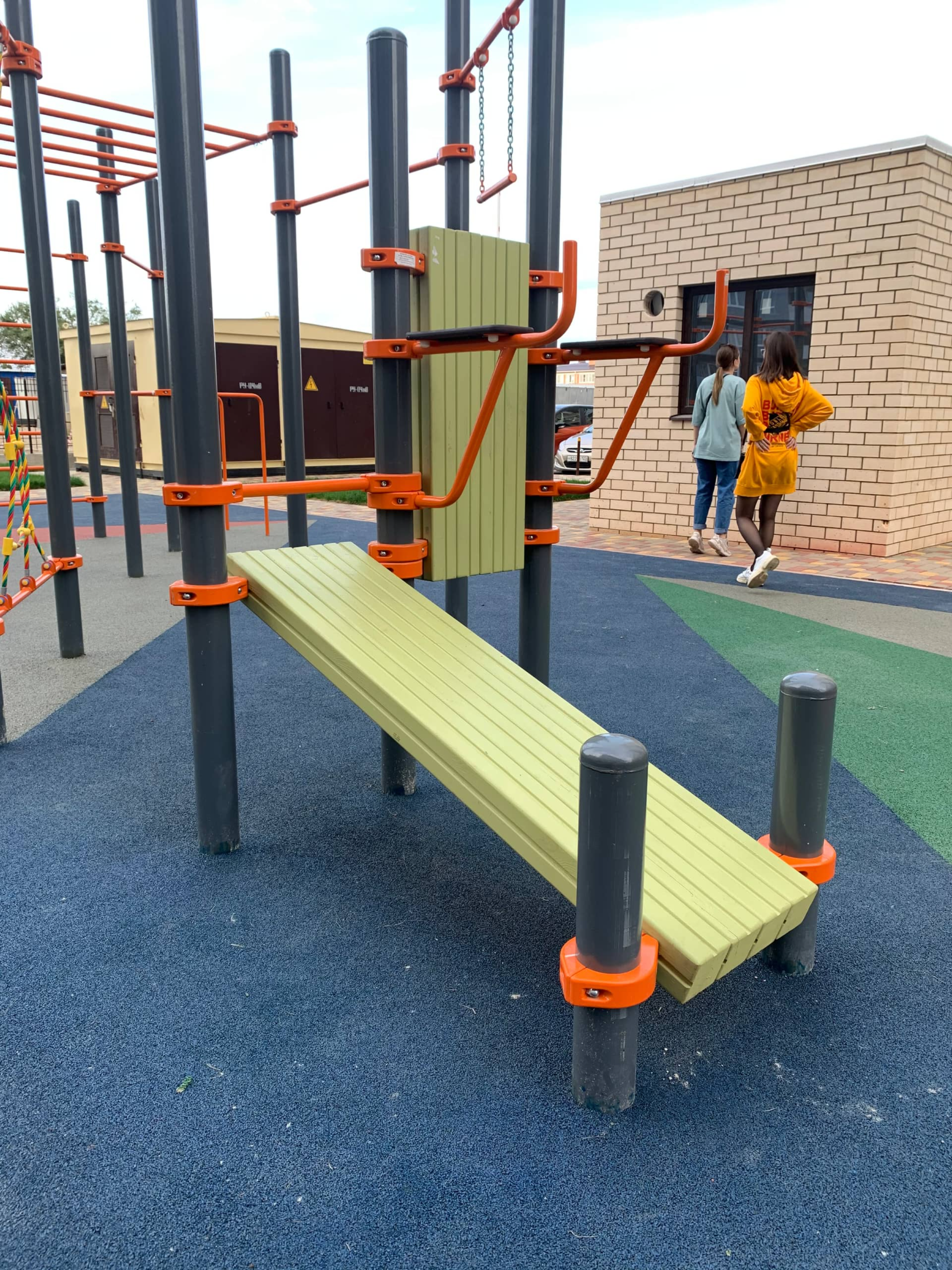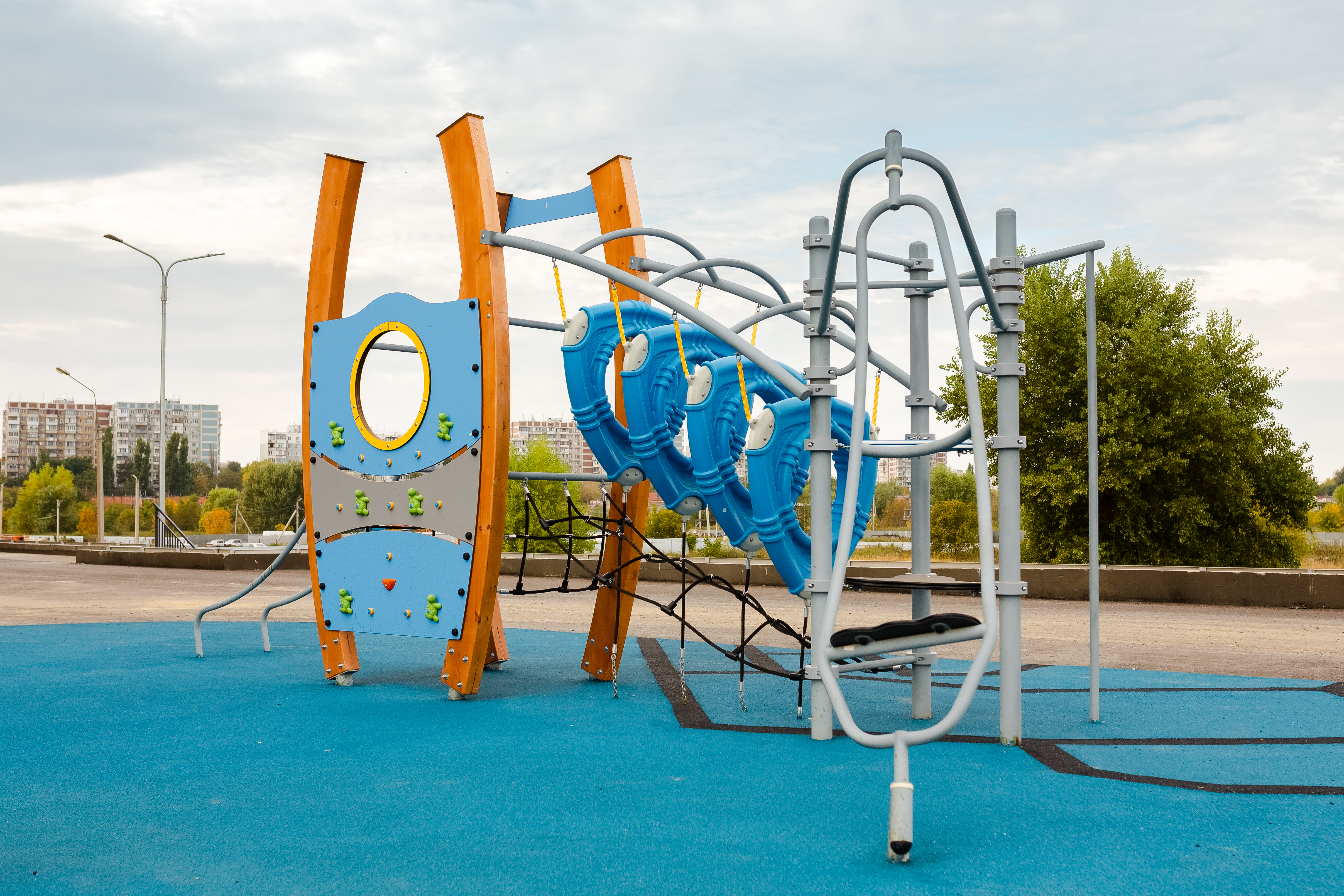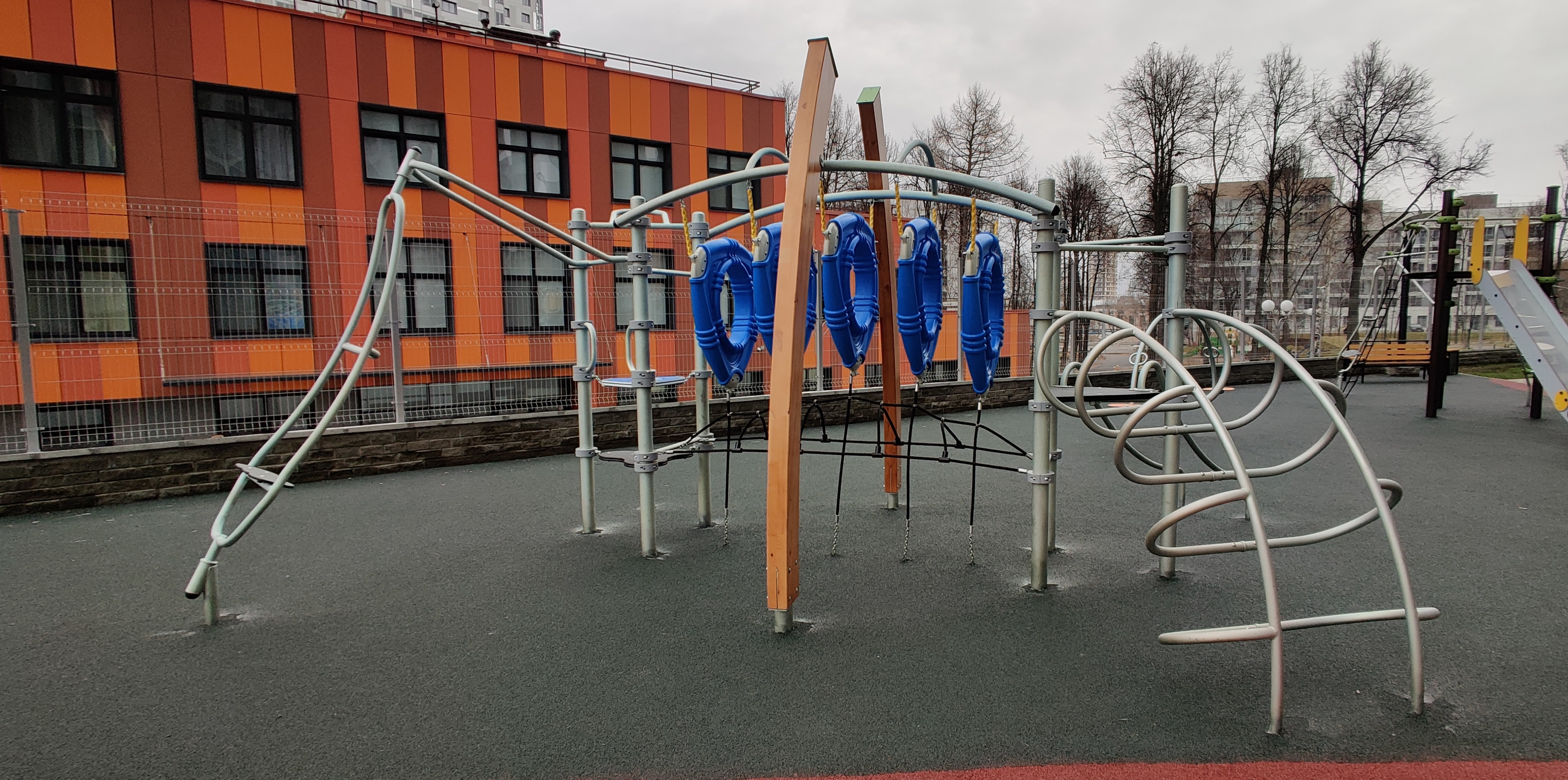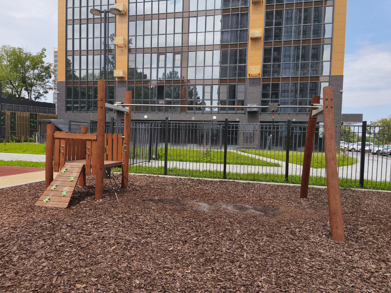 - Мягкие зоны приземления: Вокруг конструкции должна быть зона безопасности с мягким покрытием (например, резиновая крошка или искусственный газон) для смягчения падений и ударов.