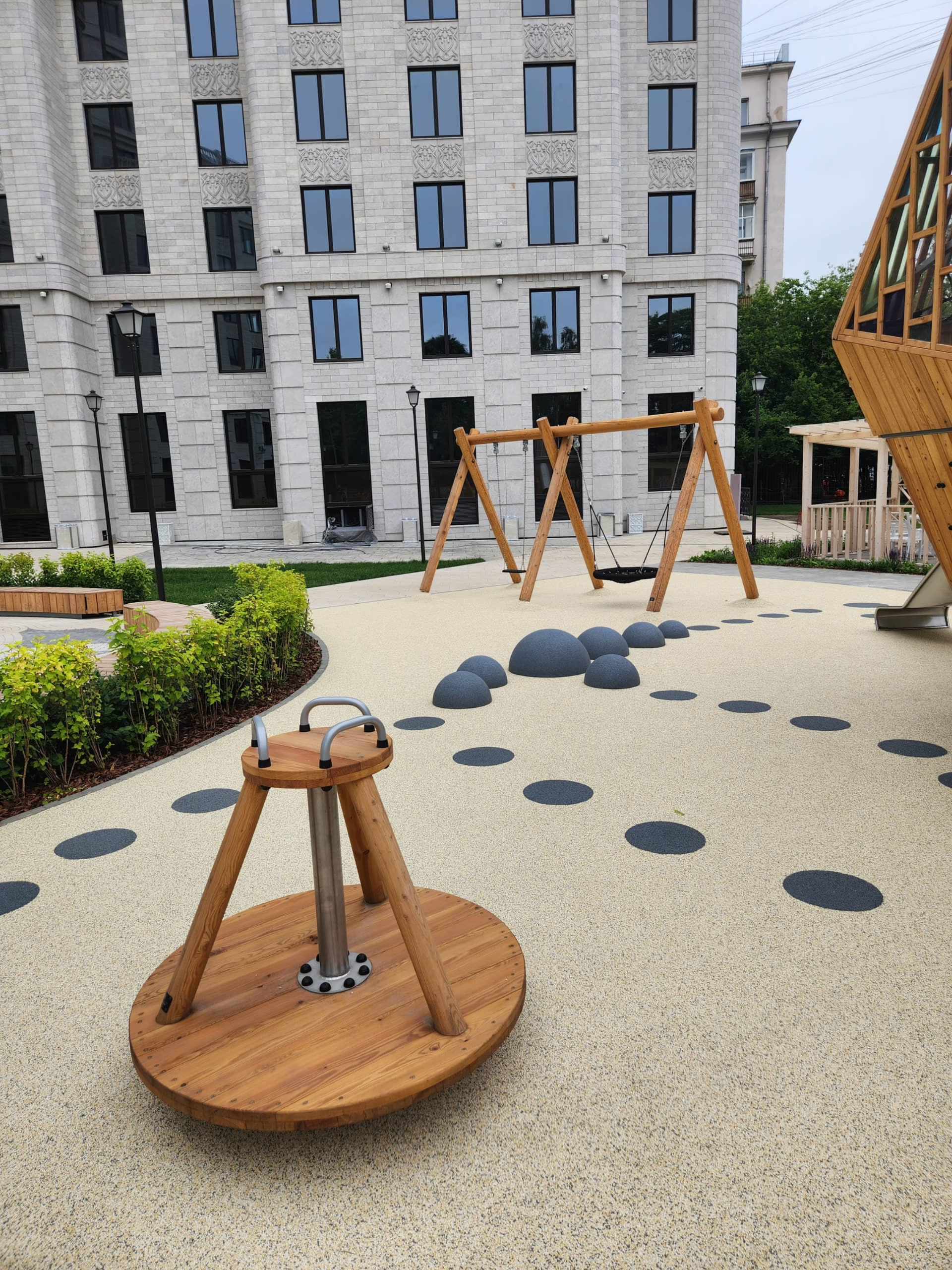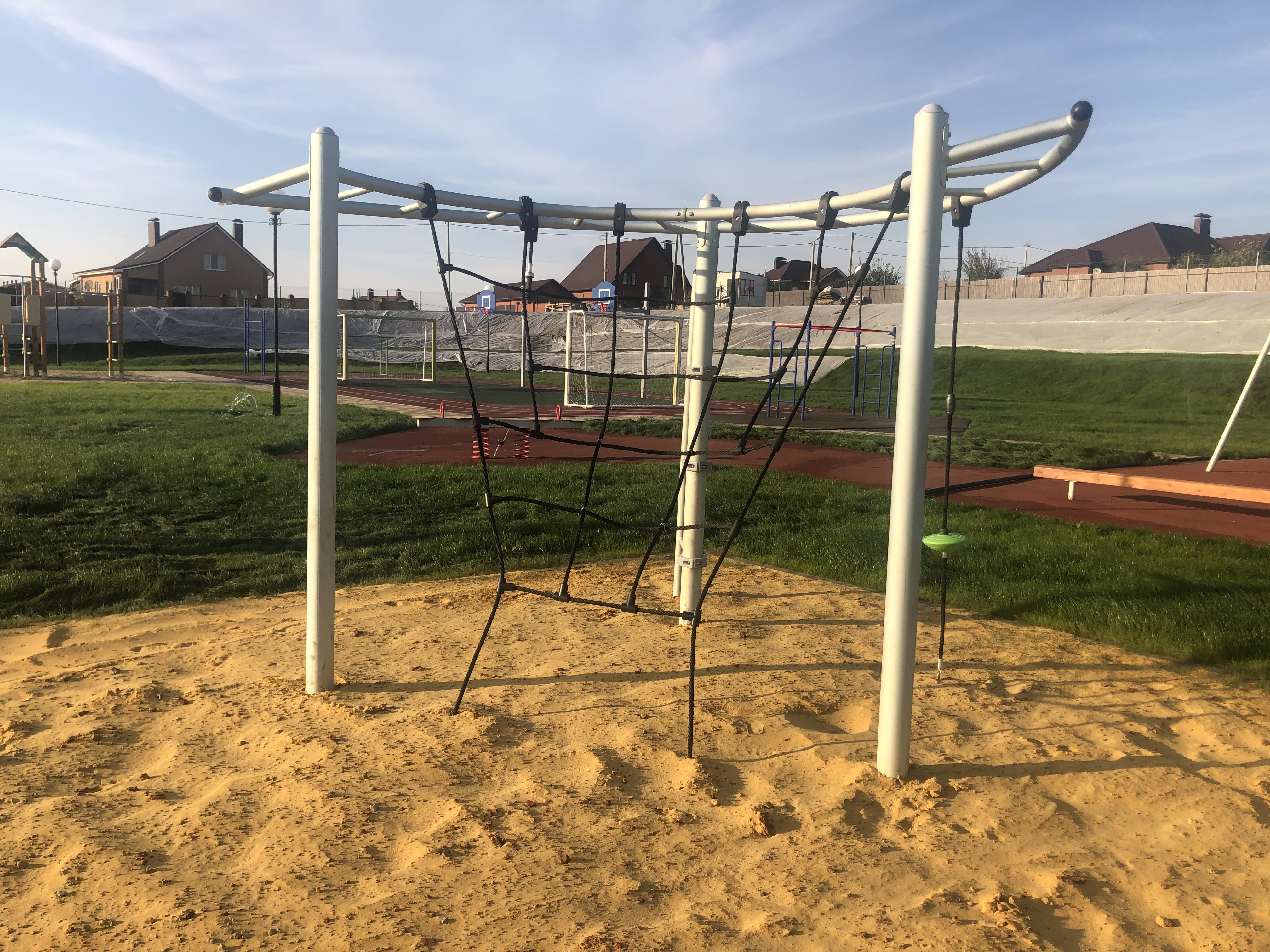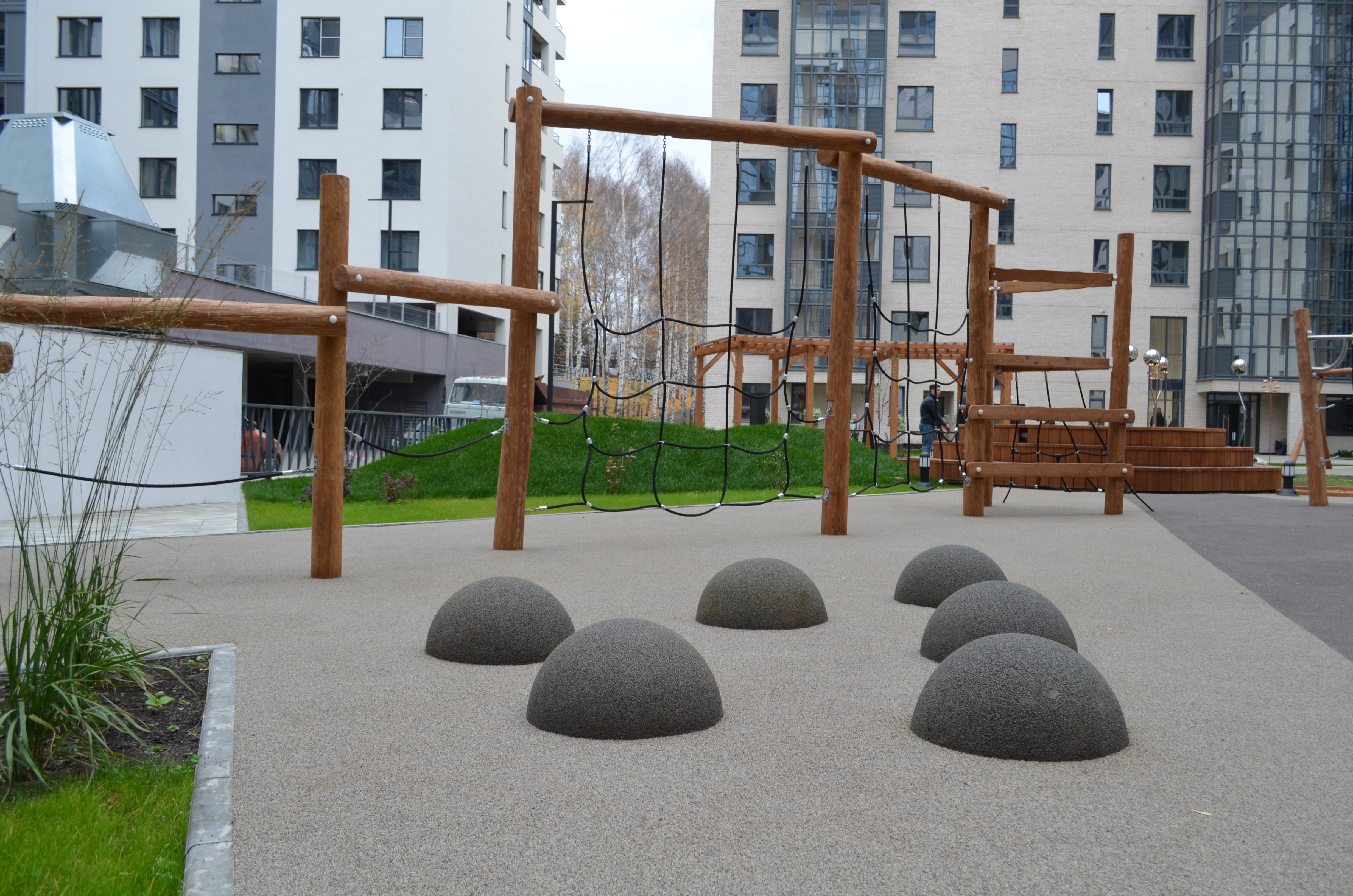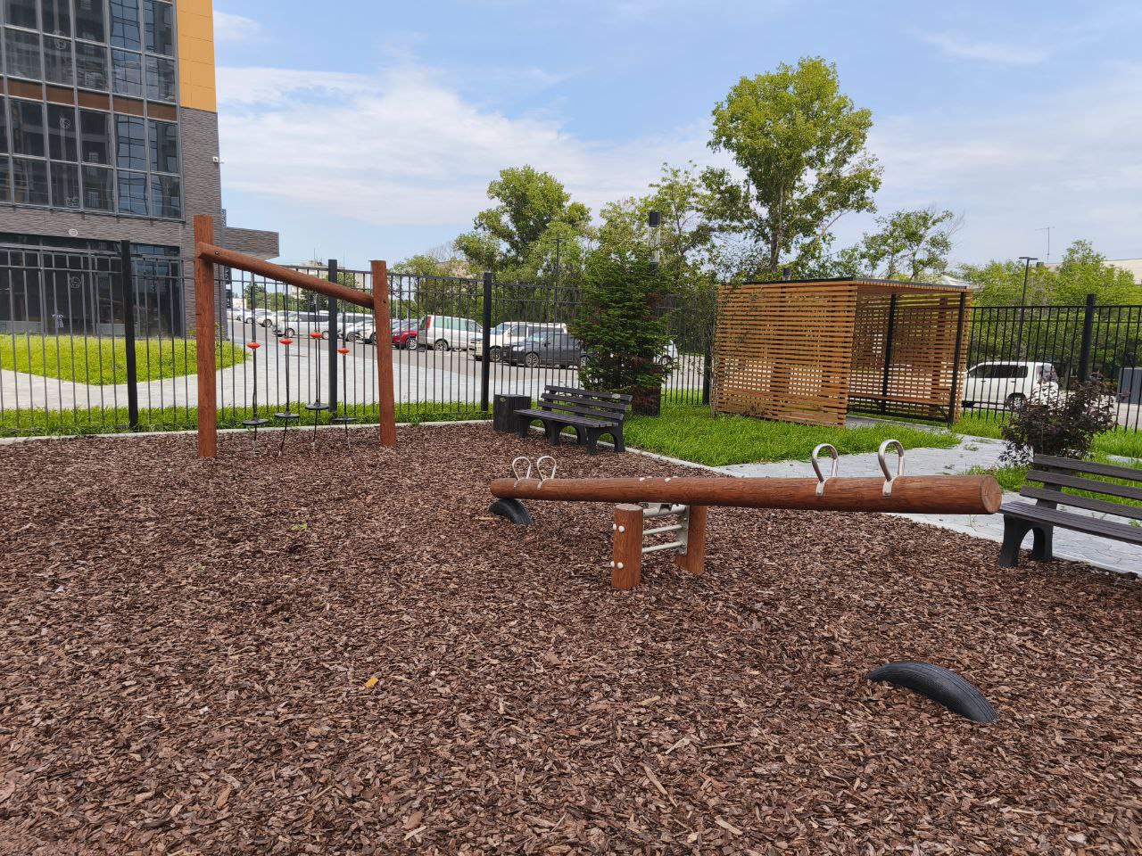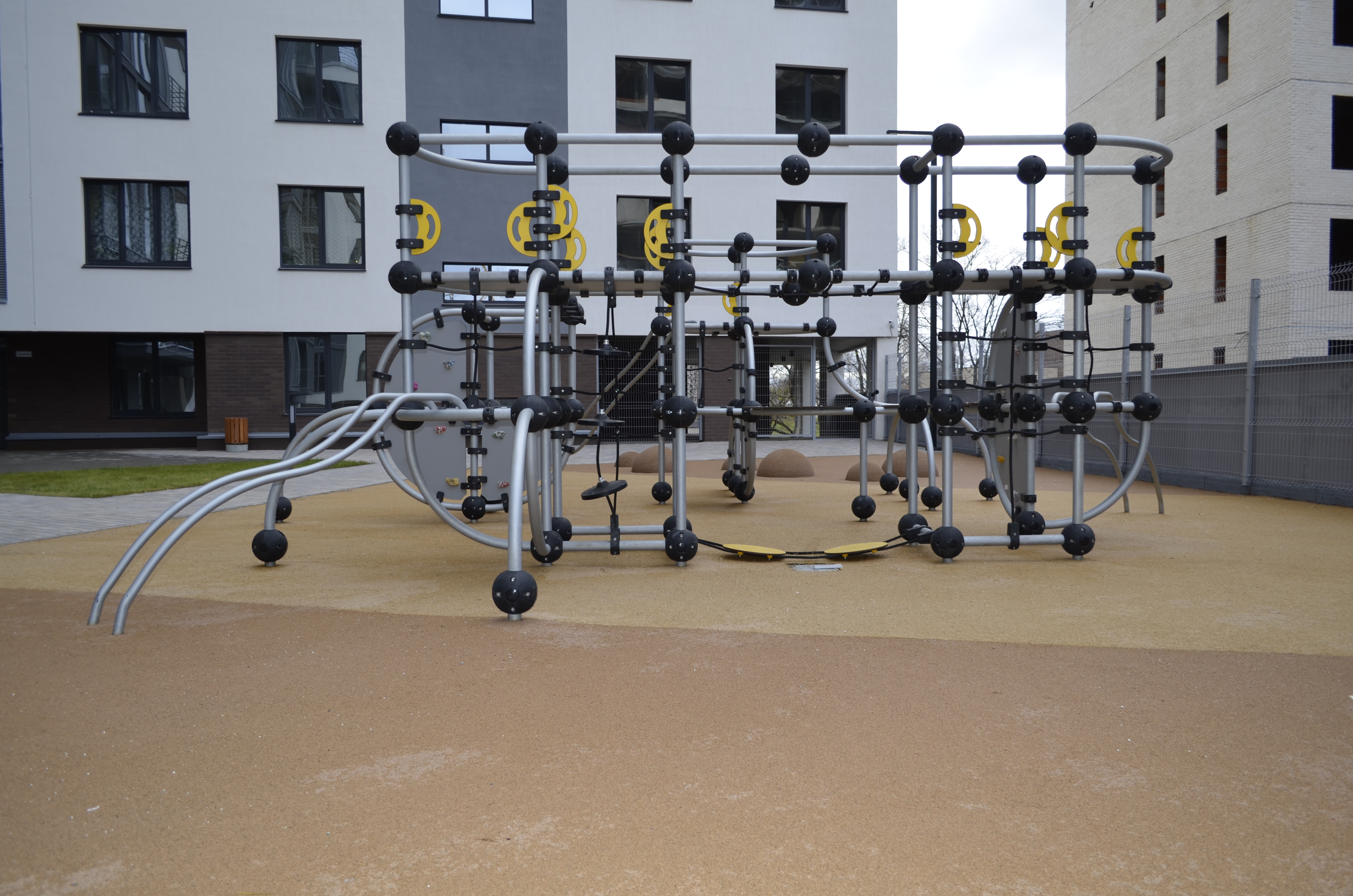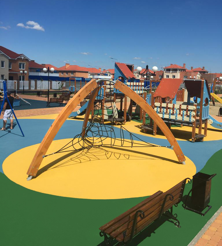 - Мягкие зоны приземления: Вокруг конструкции должна быть зона безопасности с мягким покрытием (например, резиновая крошка или искусственный газон) для смягчения падений и ударов.