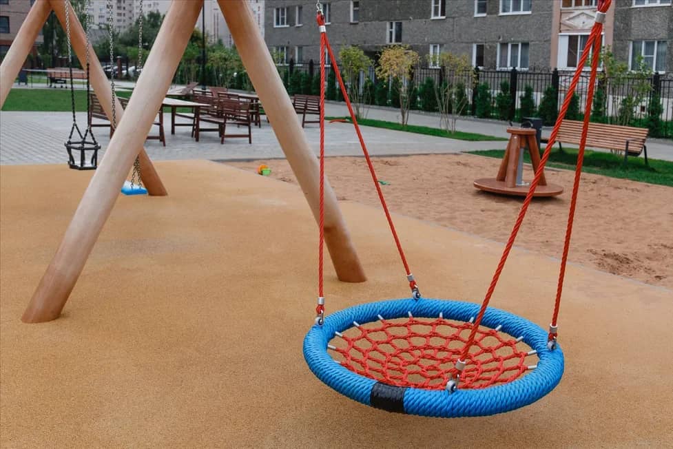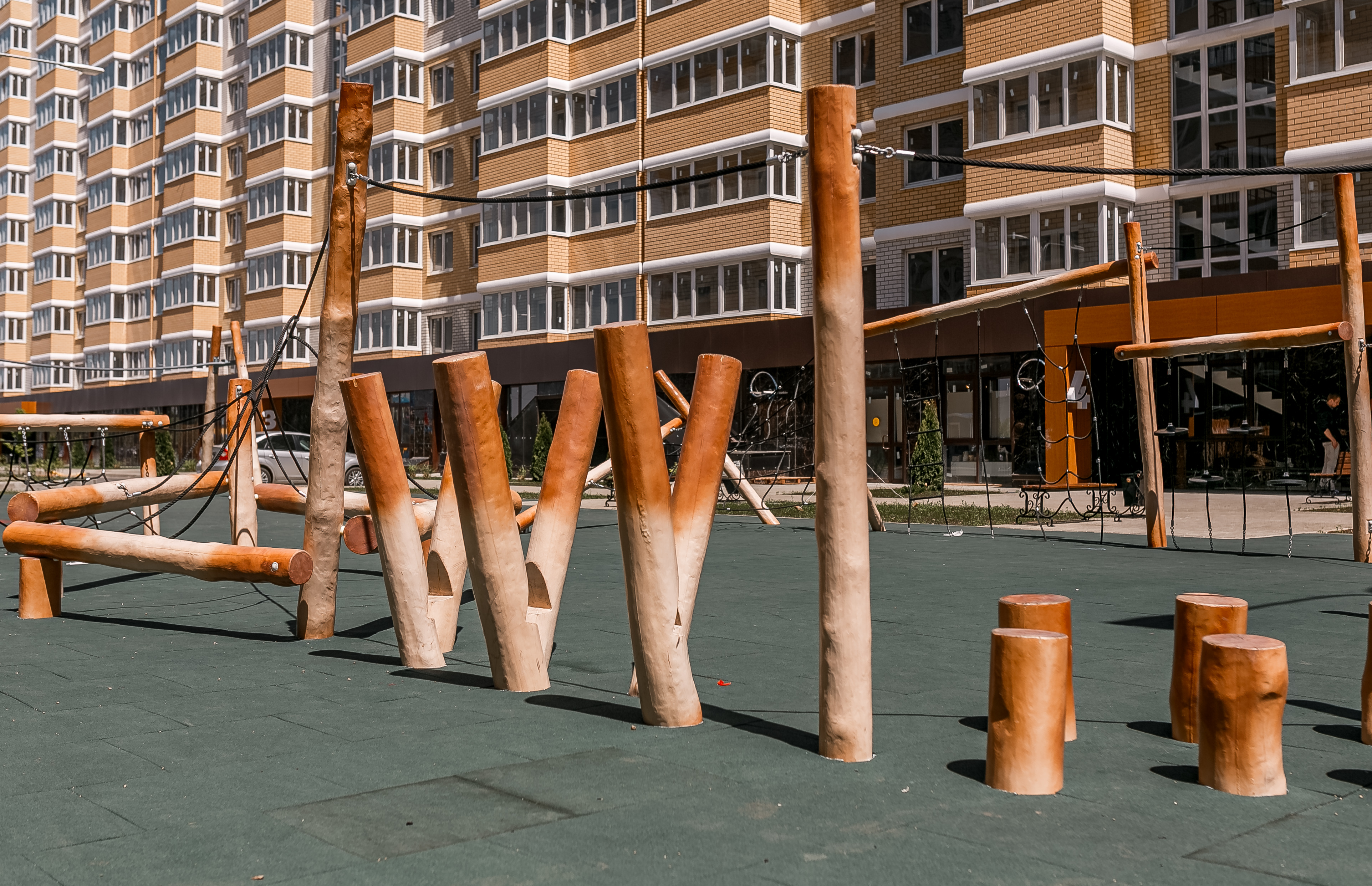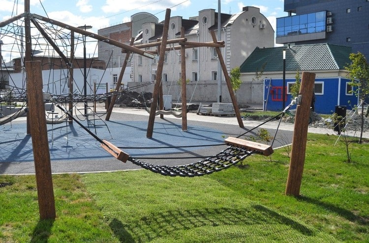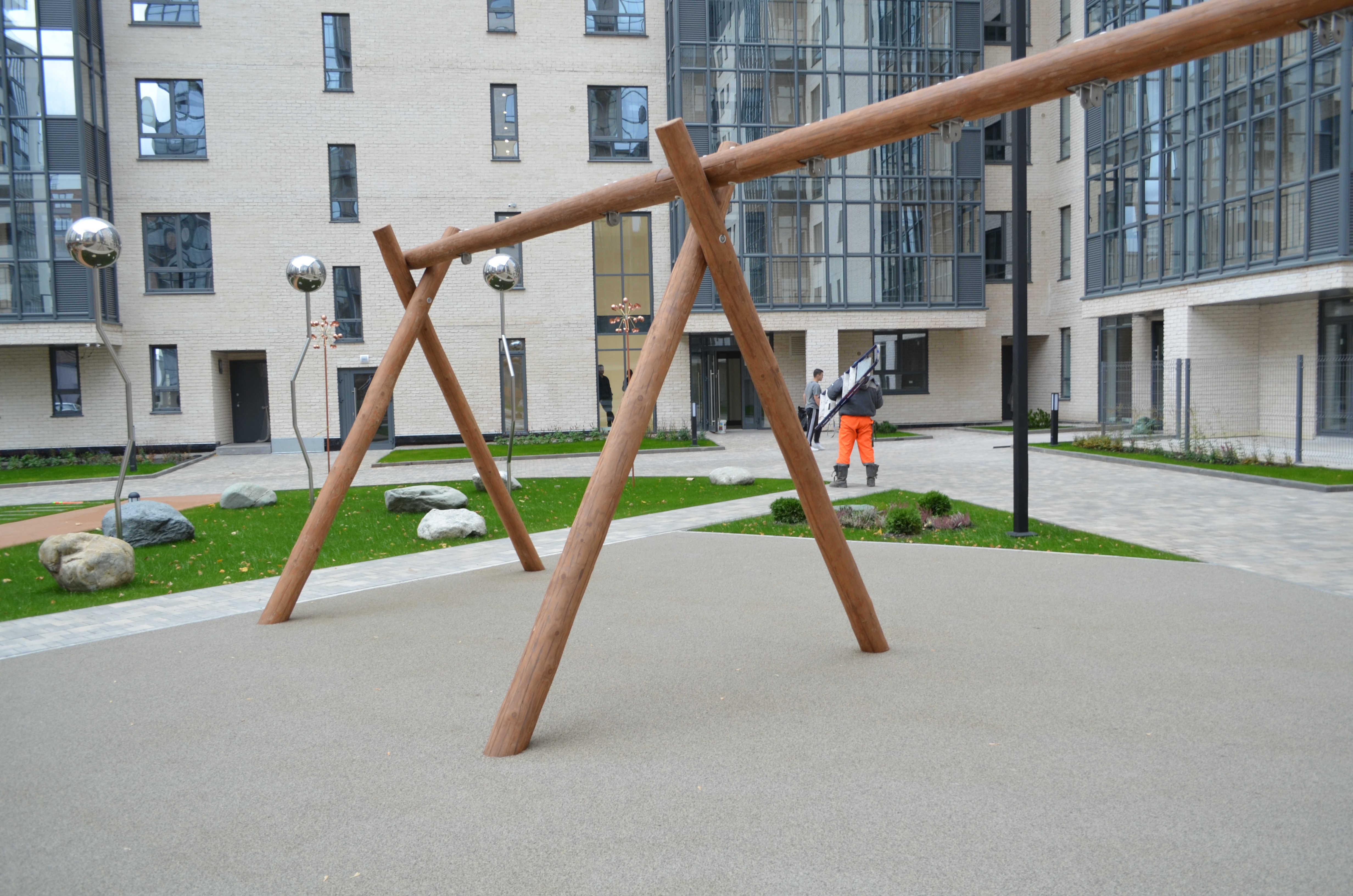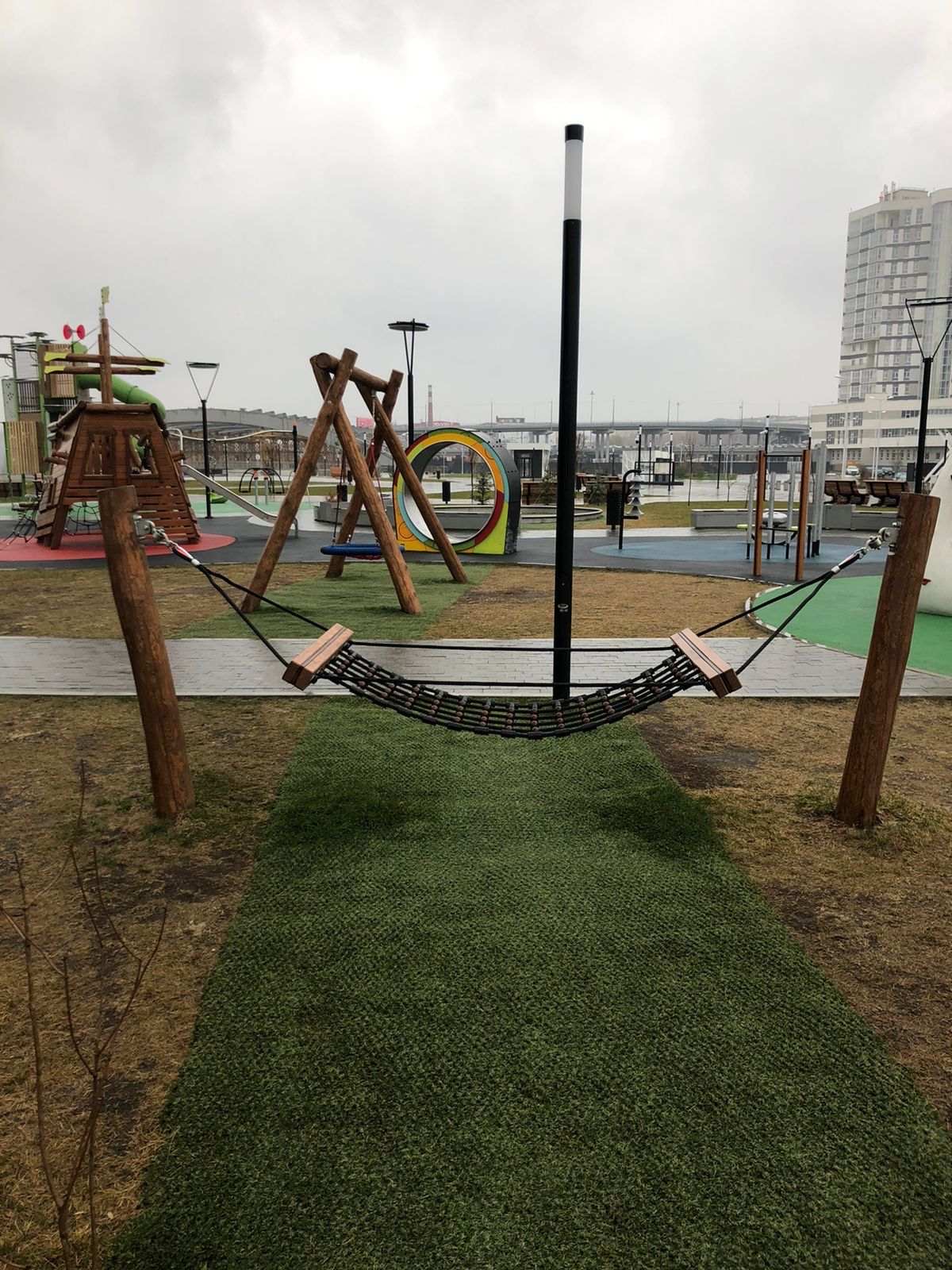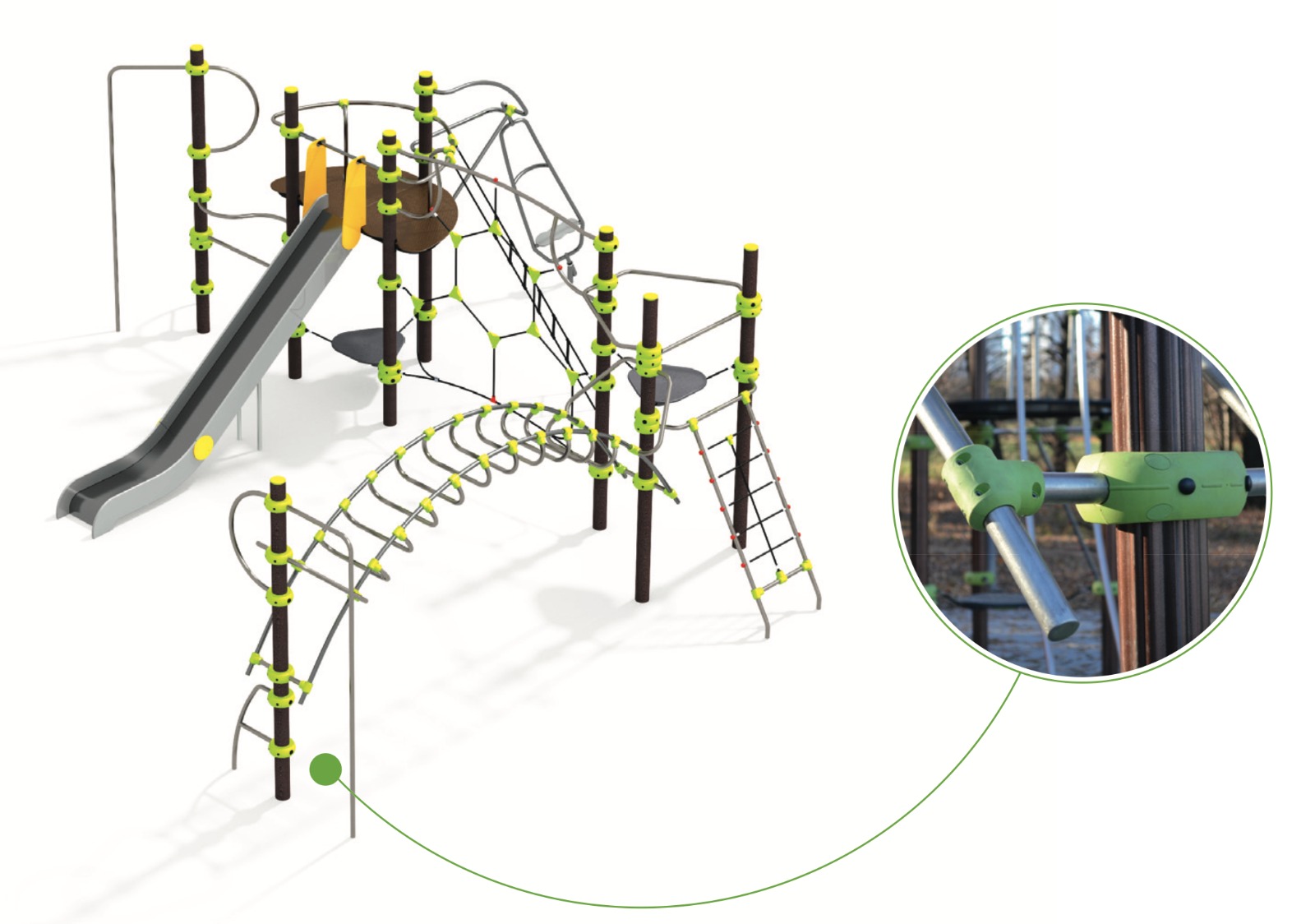- Мягкие зоны приземления: Вокруг конструкции должна быть зона безопасности с мягким покрытием (например, резиновая крошка или искусственный газон) для смягчения падений и ударов.