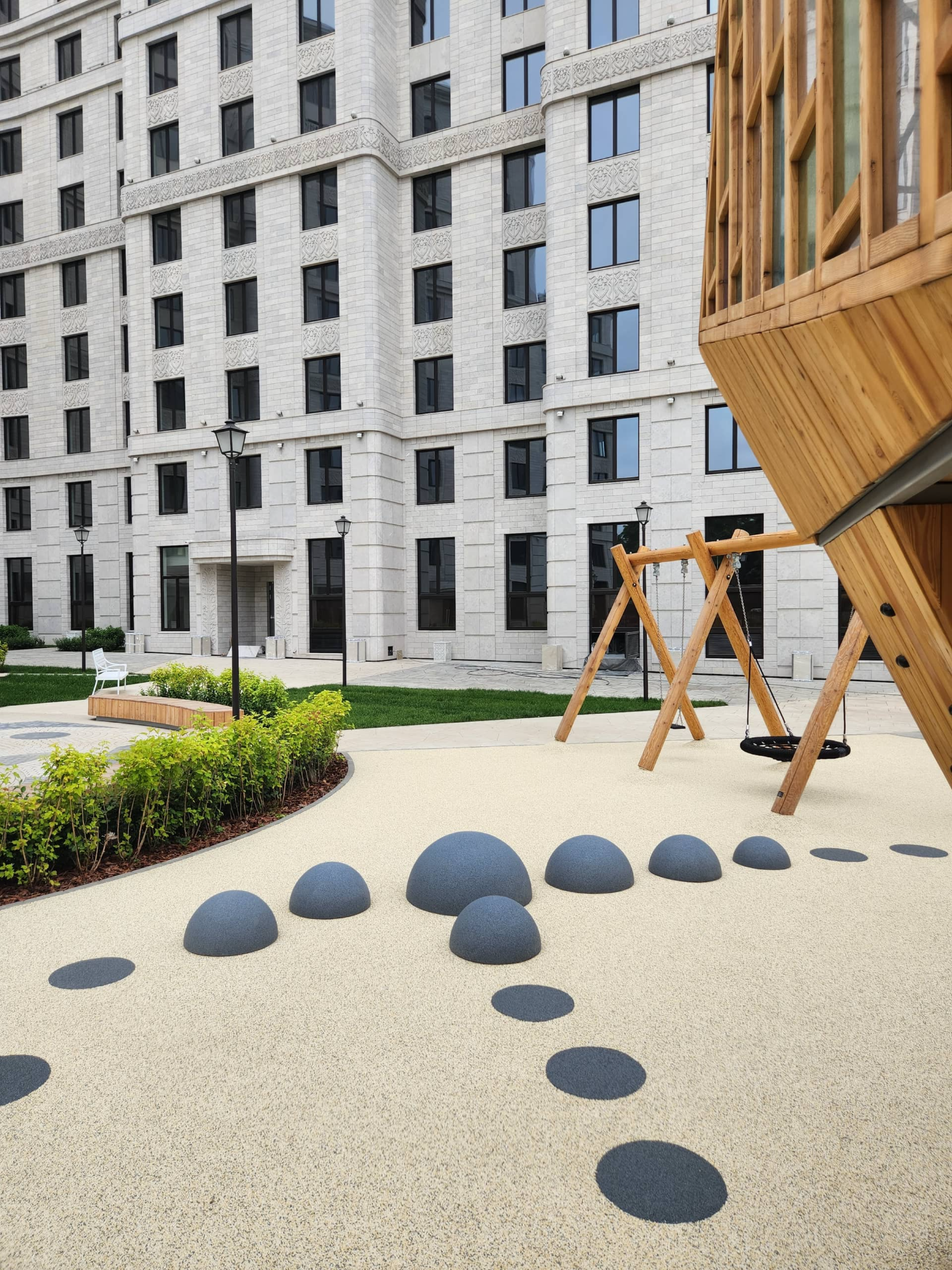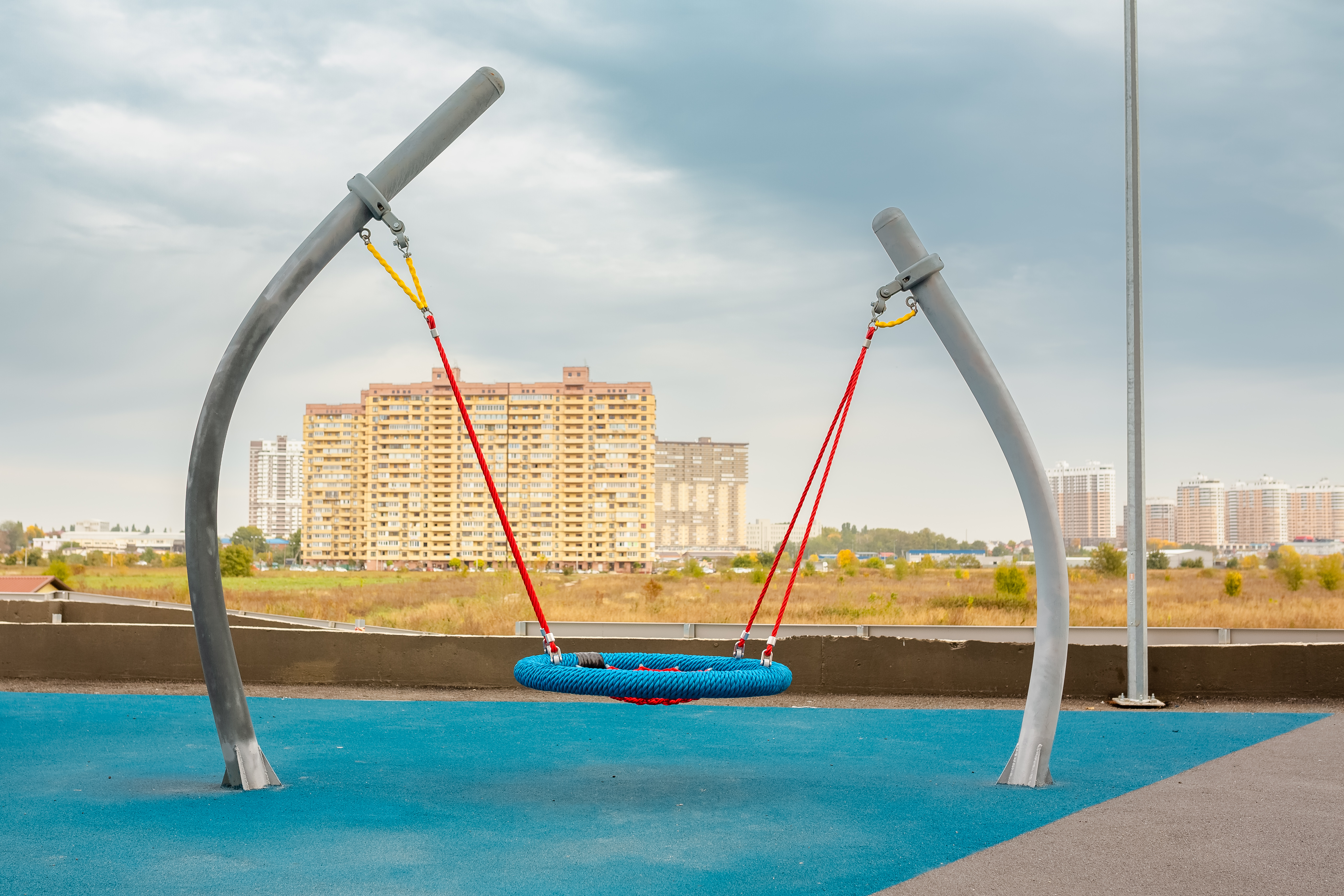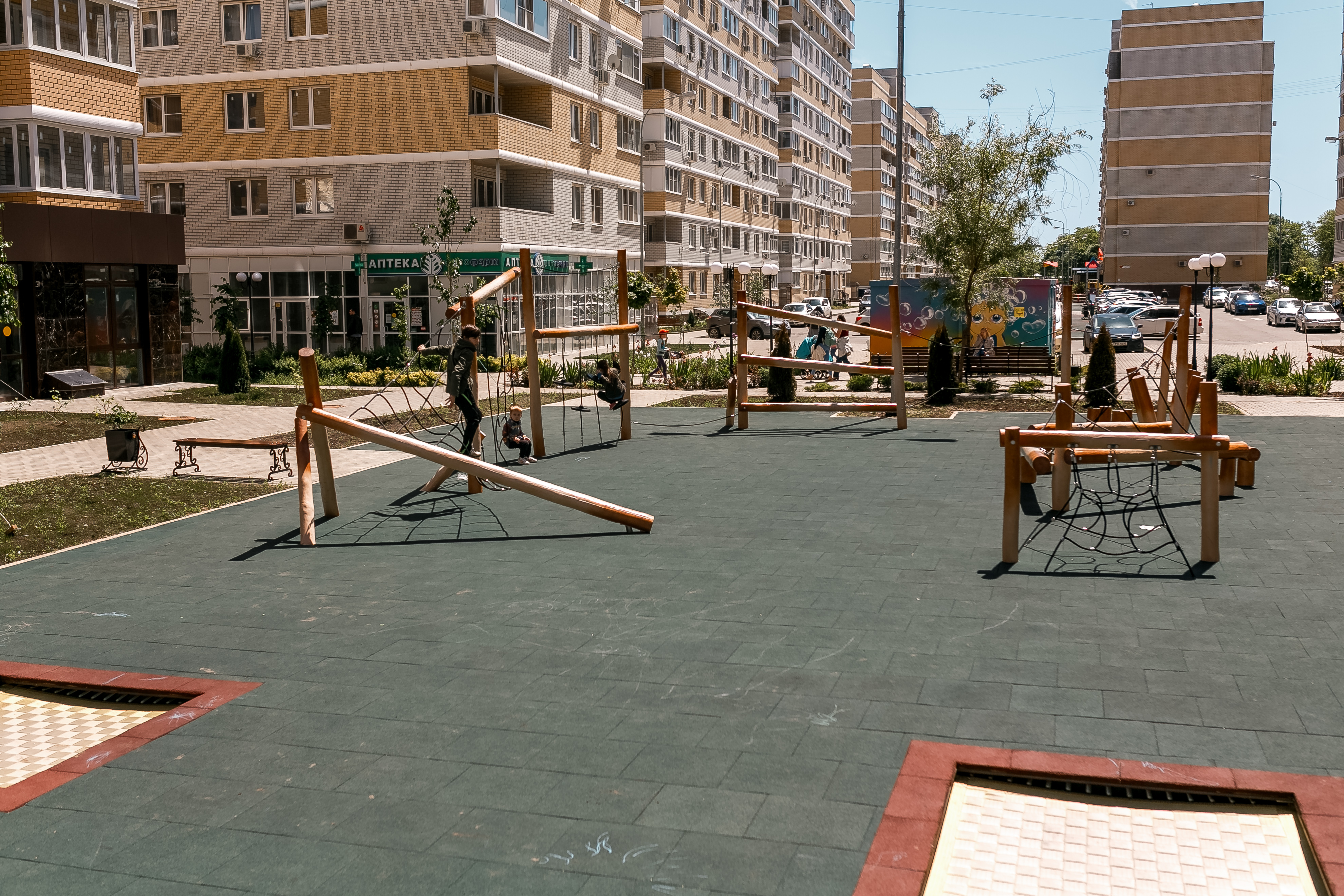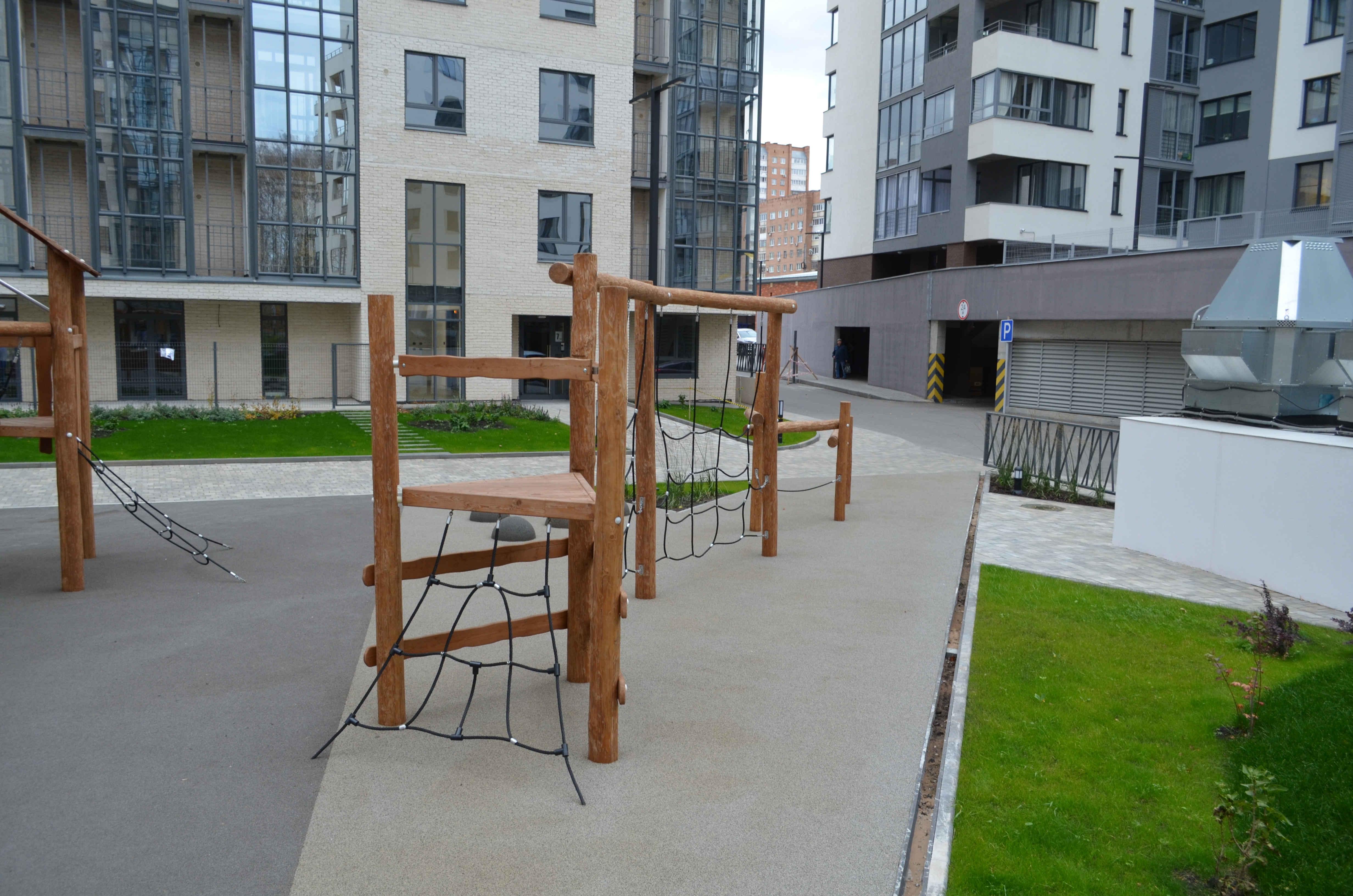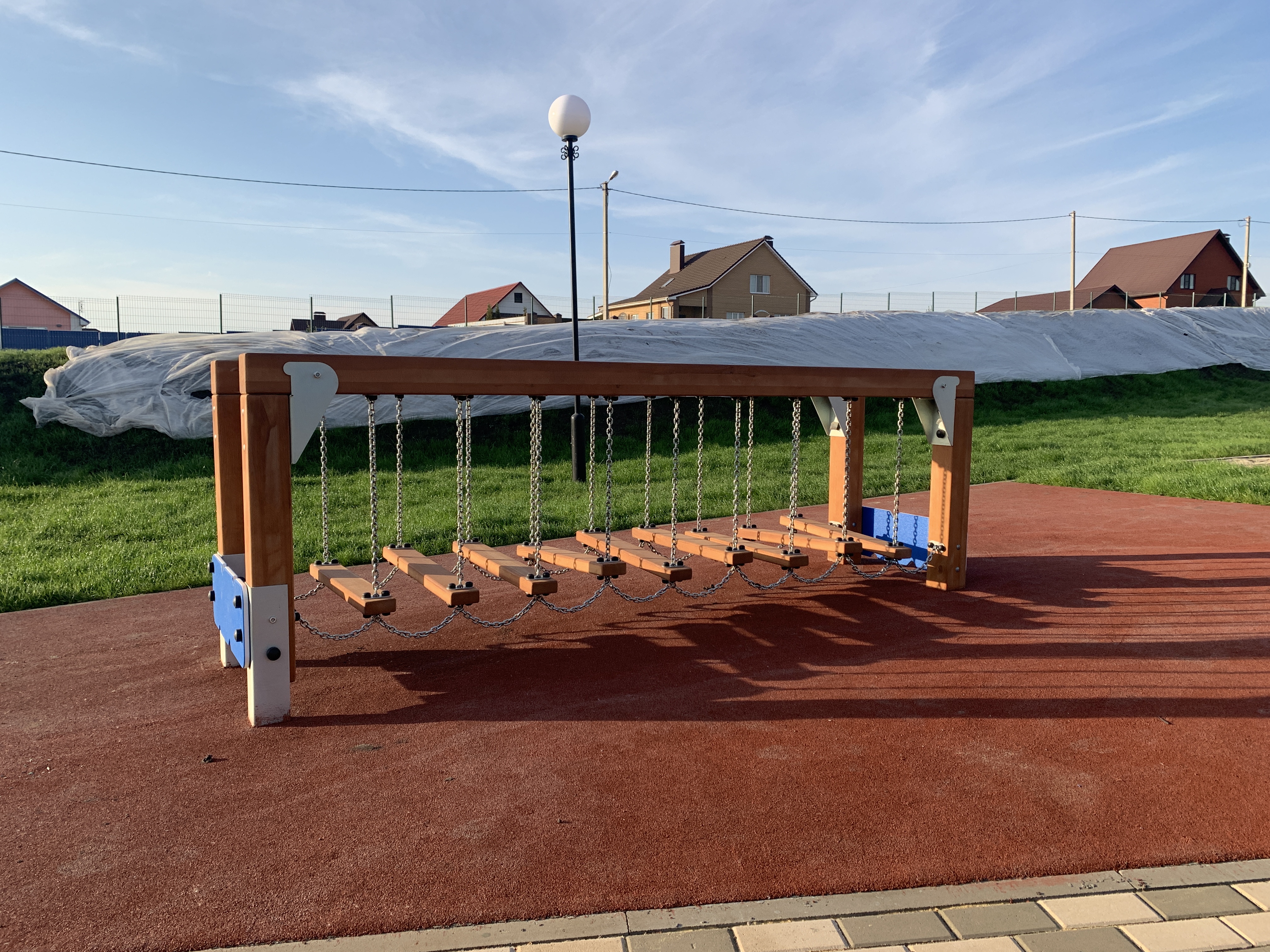 - Мягкие зоны приземления: Вокруг конструкции должна быть зона безопасности с мягким покрытием (например, резиновая крошка или искусственный газон) для смягчения падений и ударов.