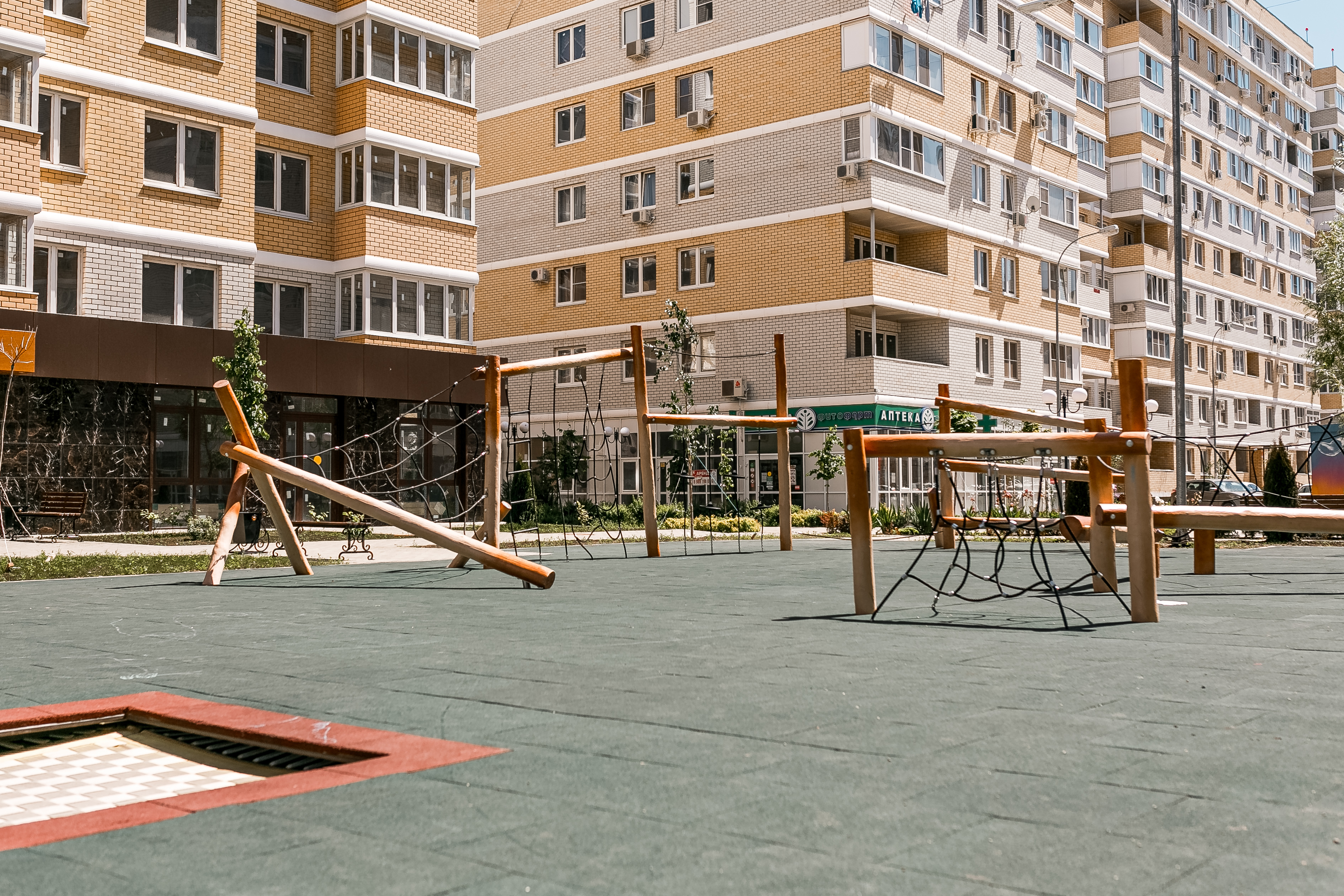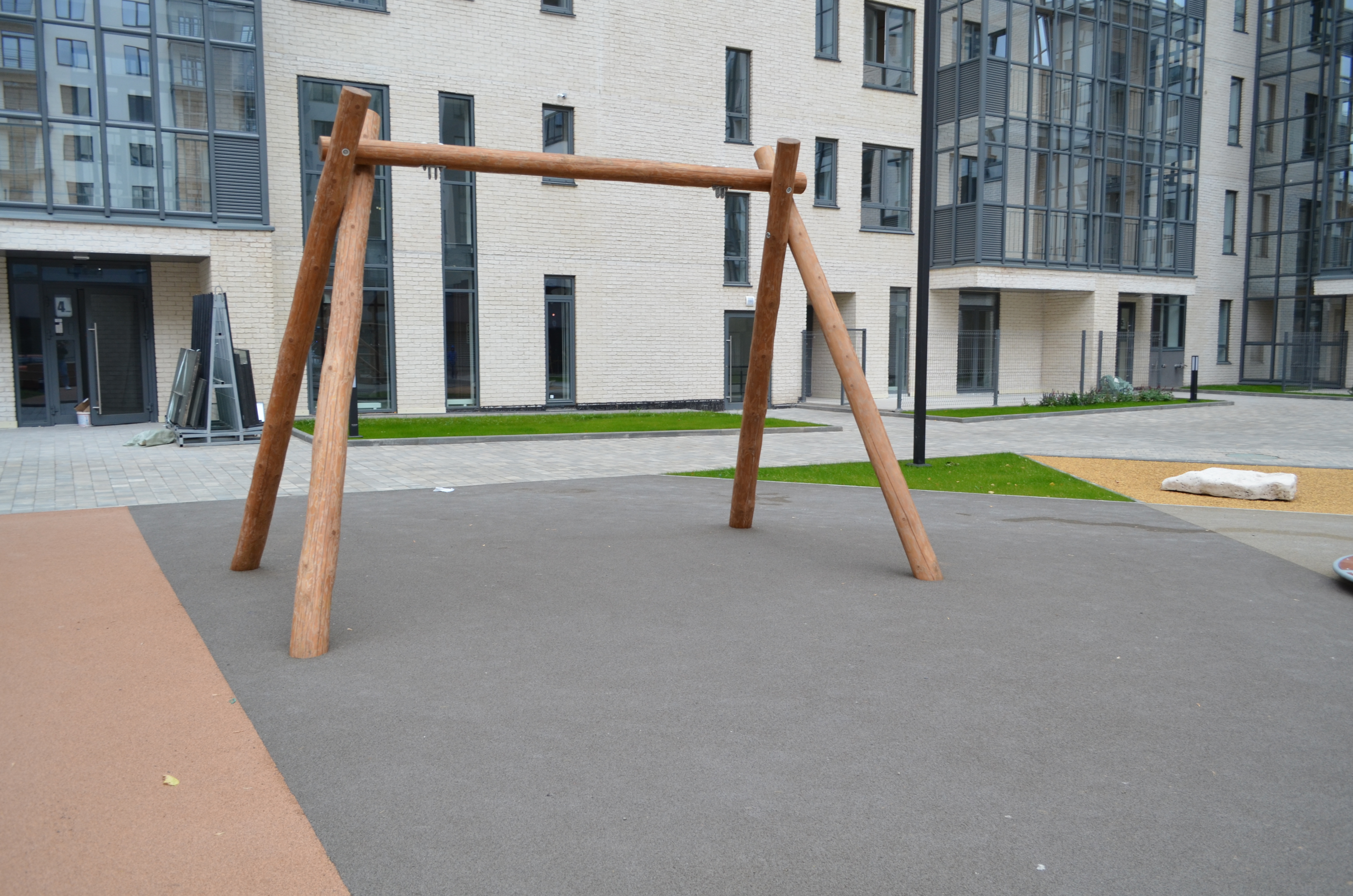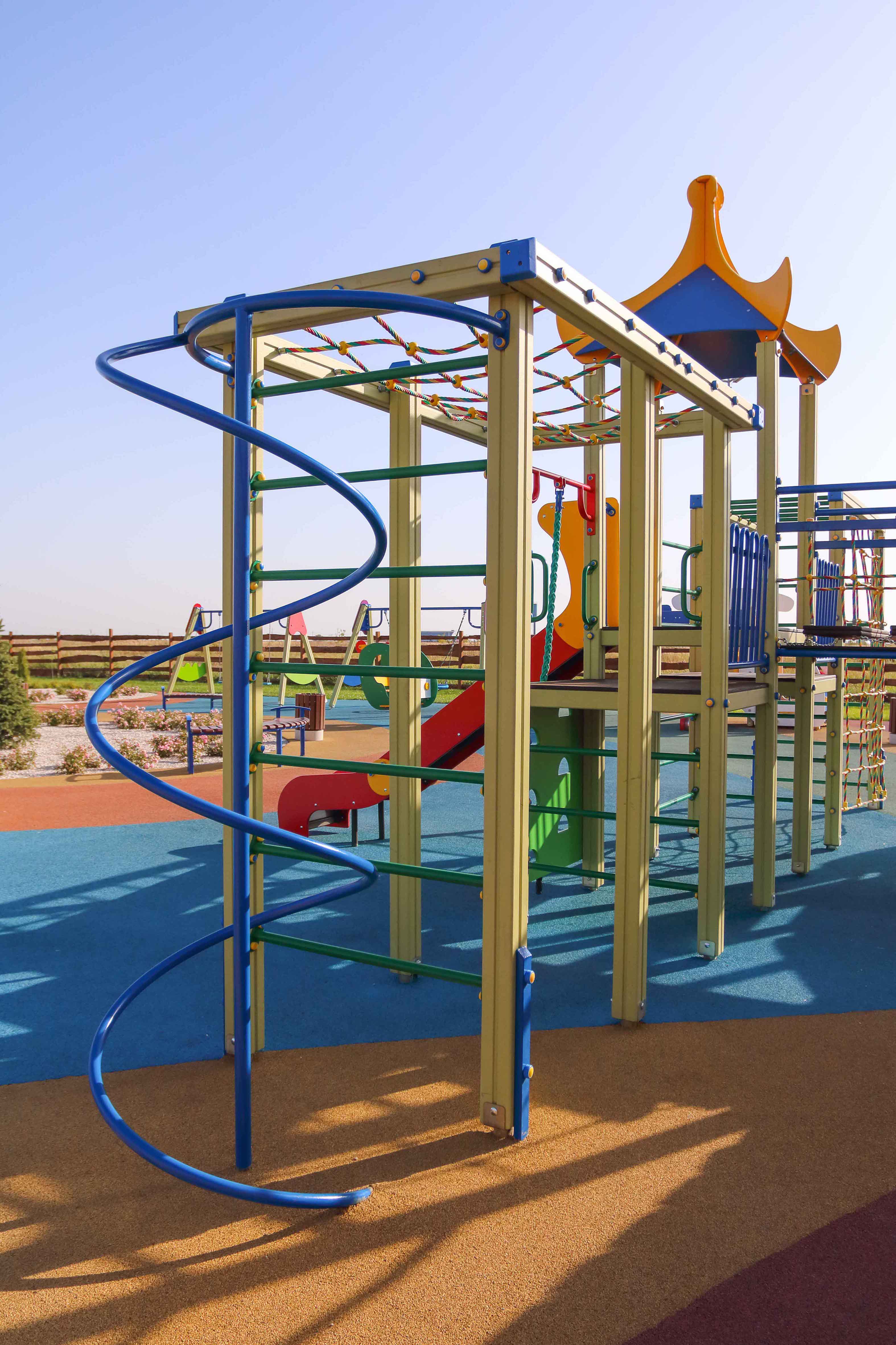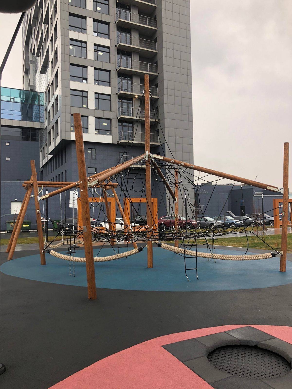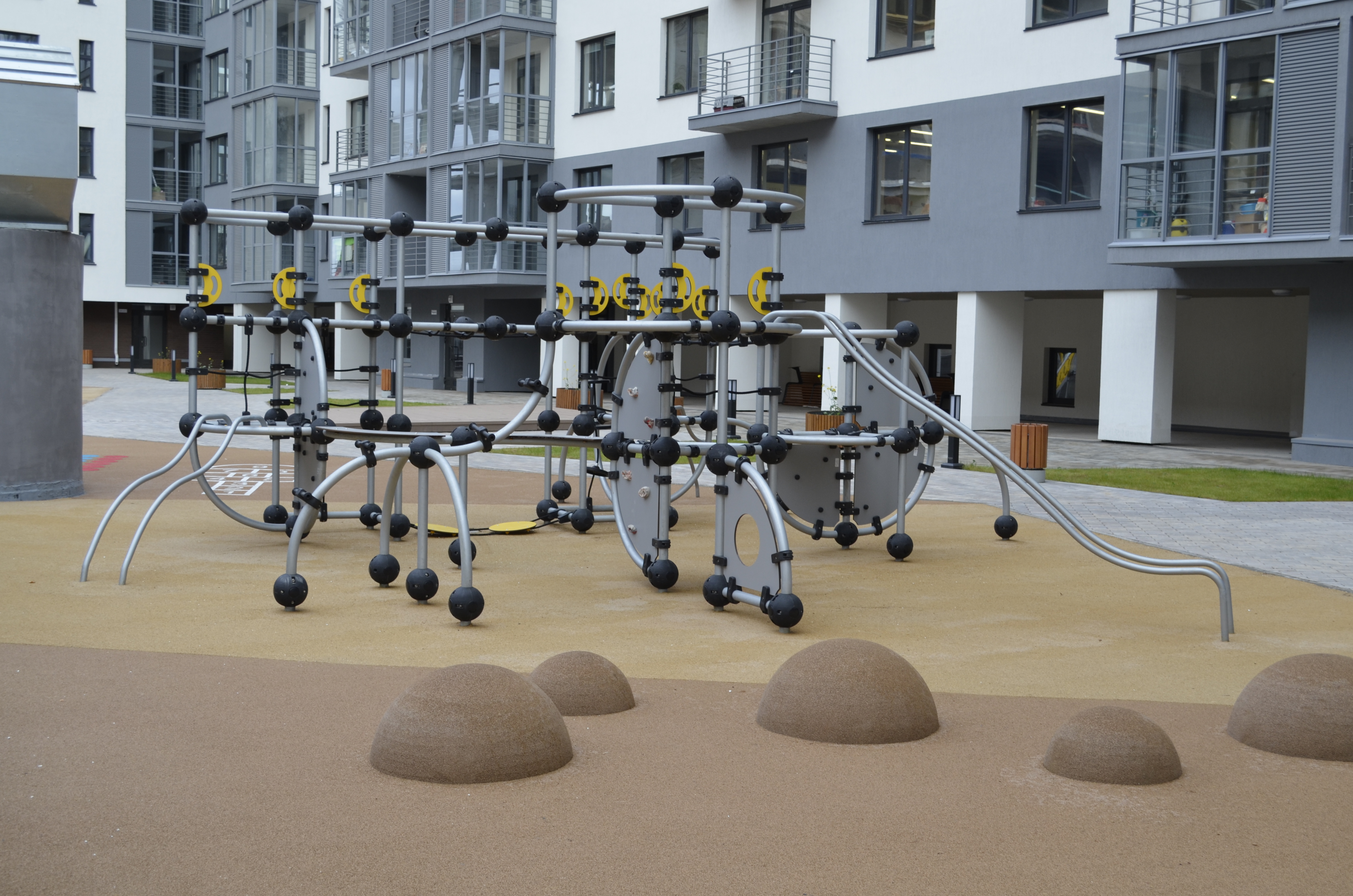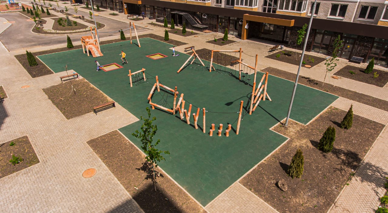 - Мягкие зоны приземления: Вокруг конструкции должна быть зона безопасности с мягким покрытием (например, резиновая крошка или искусственный газон) для смягчения падений и ударов.
