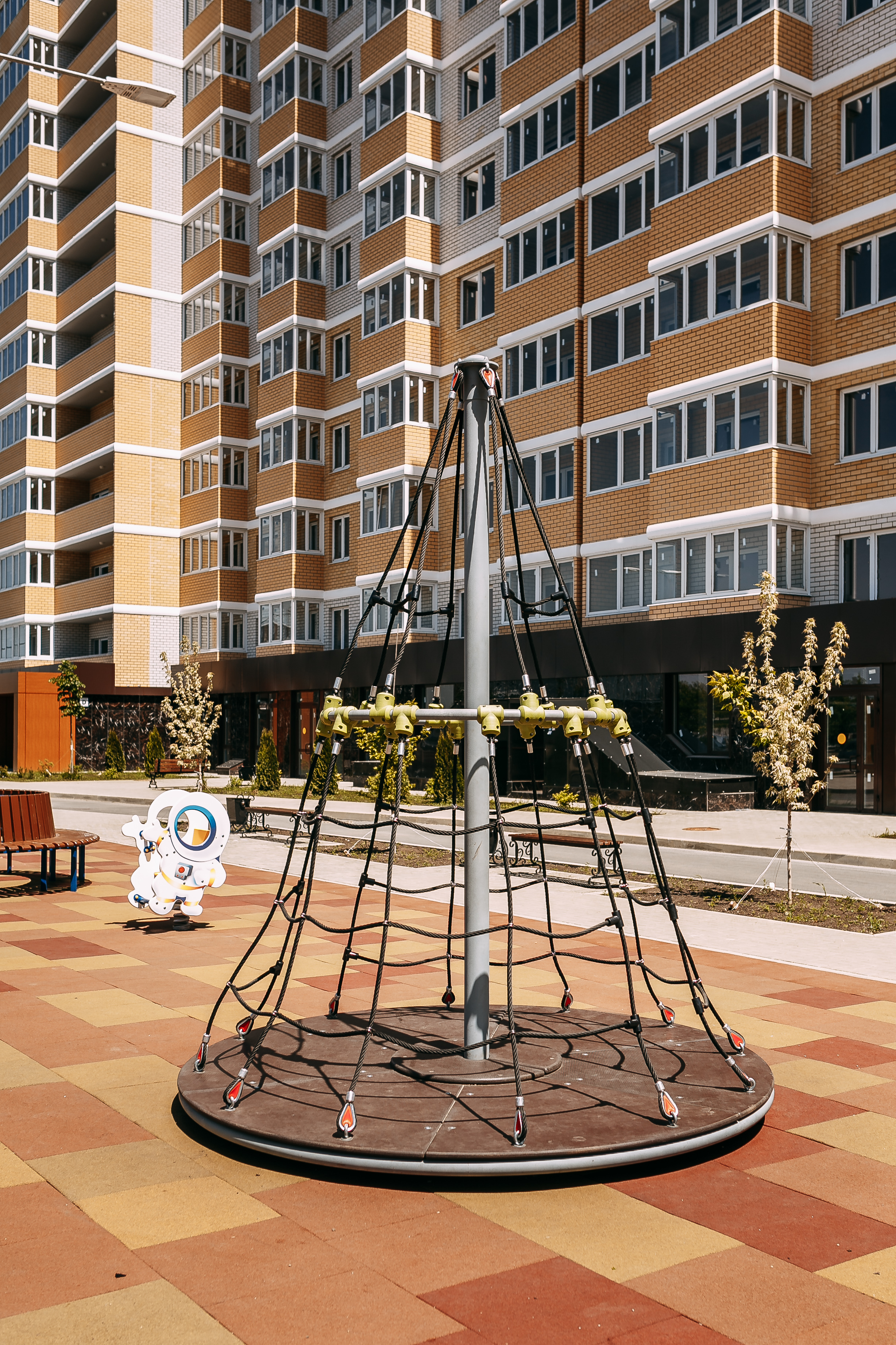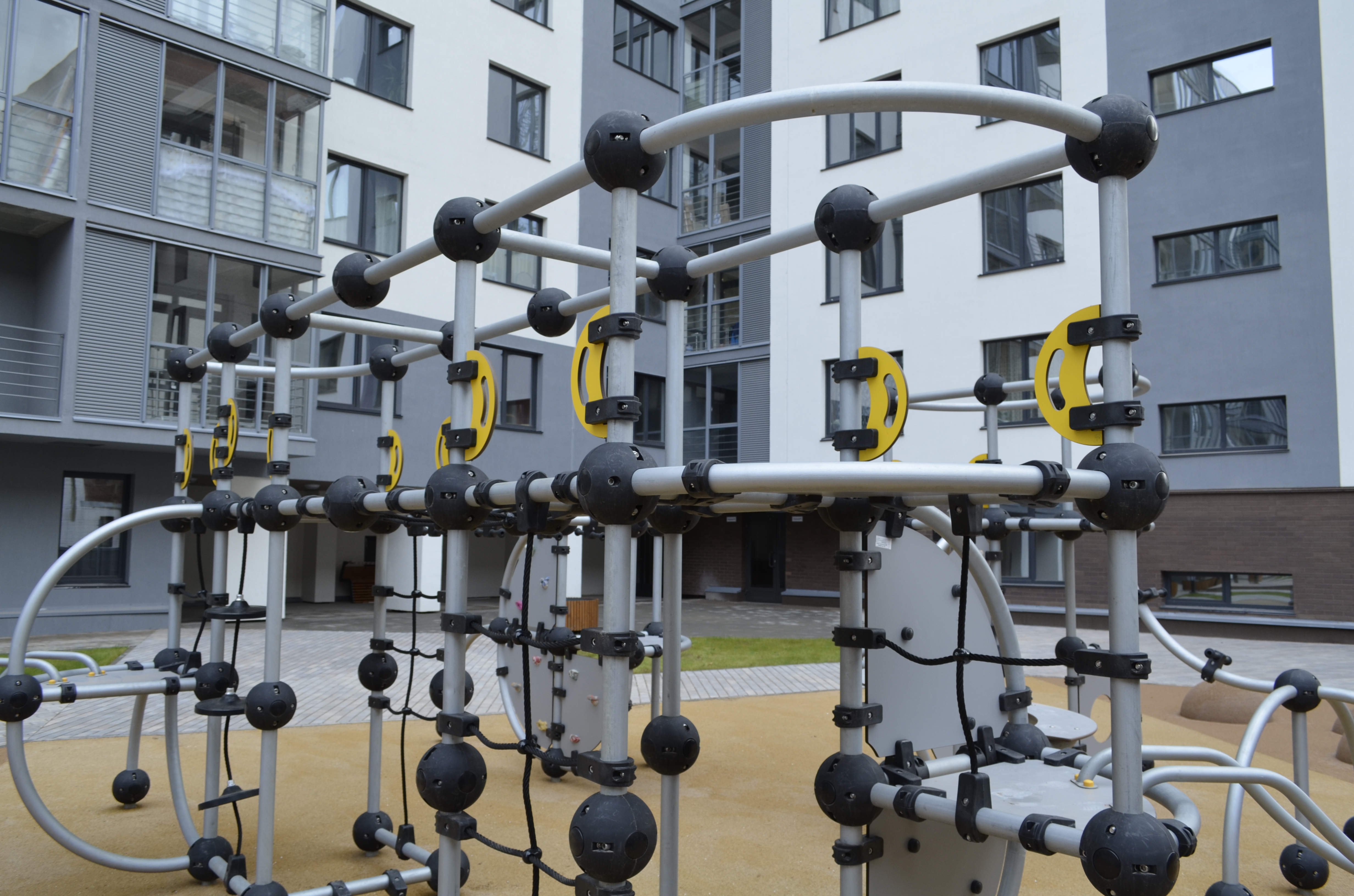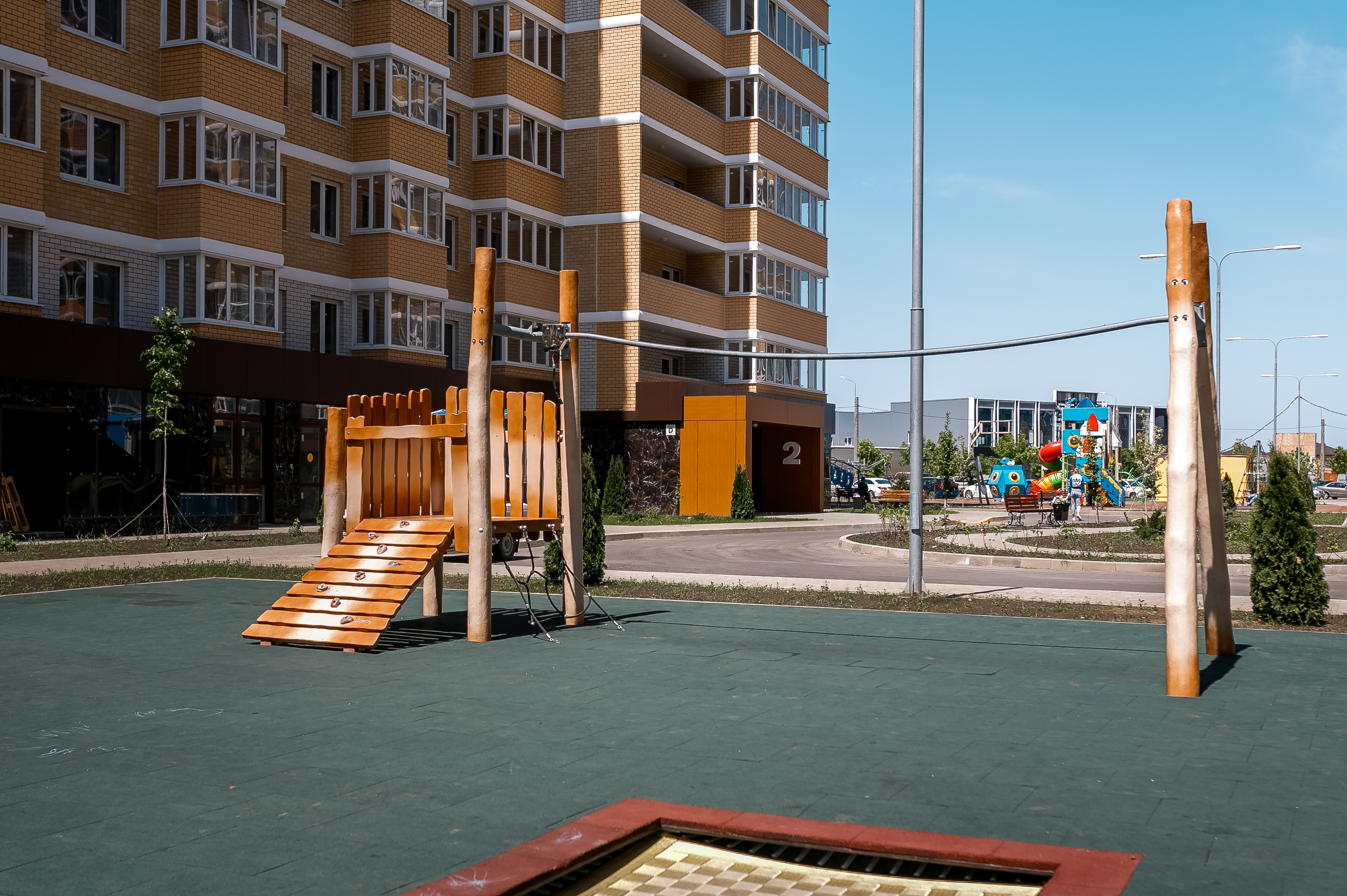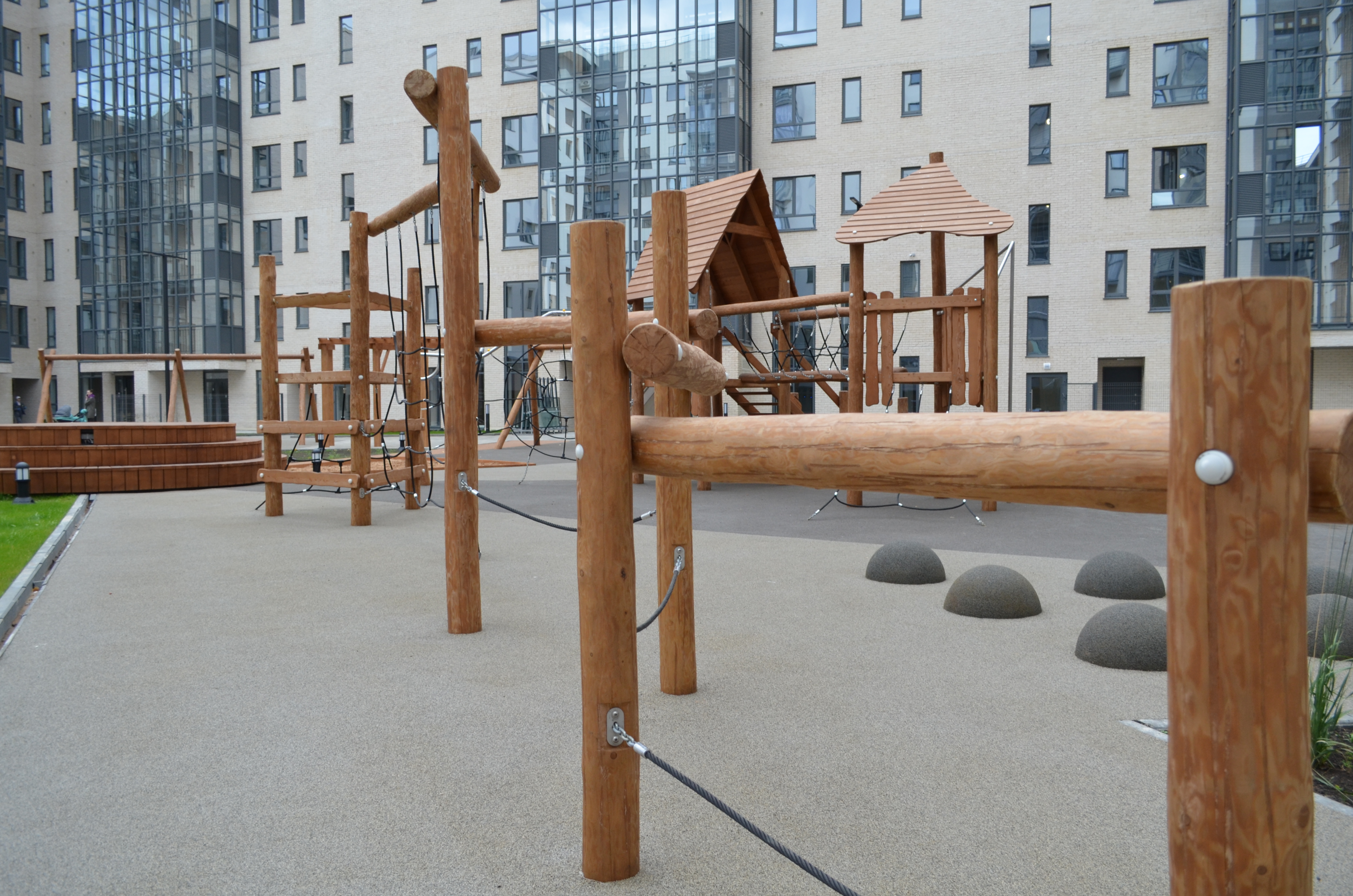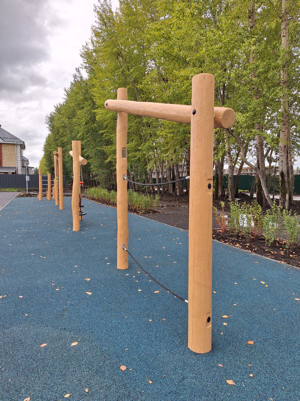 - Мягкие зоны приземления: Вокруг конструкции должна быть зона безопасности с мягким покрытием (например, резиновая крошка или искусственный газон) для смягчения падений и ударов.