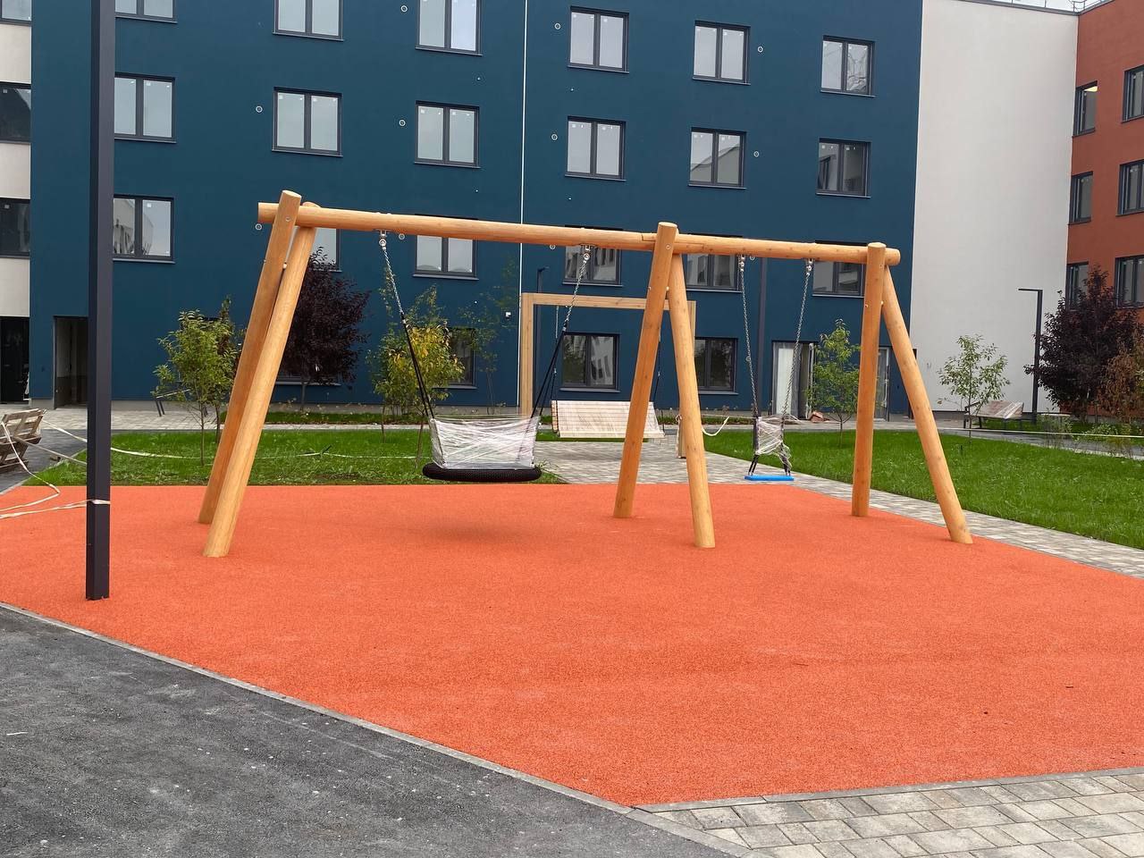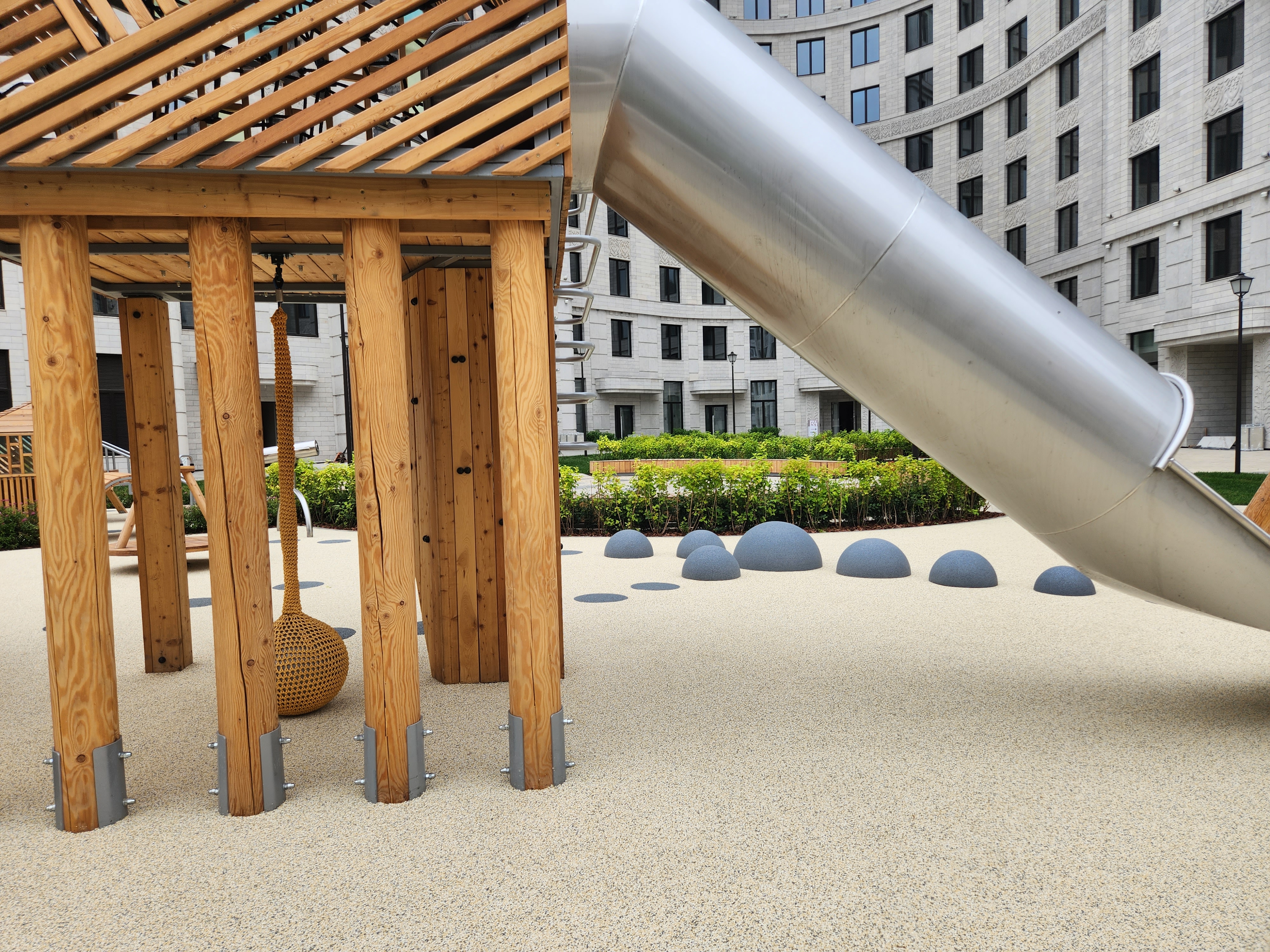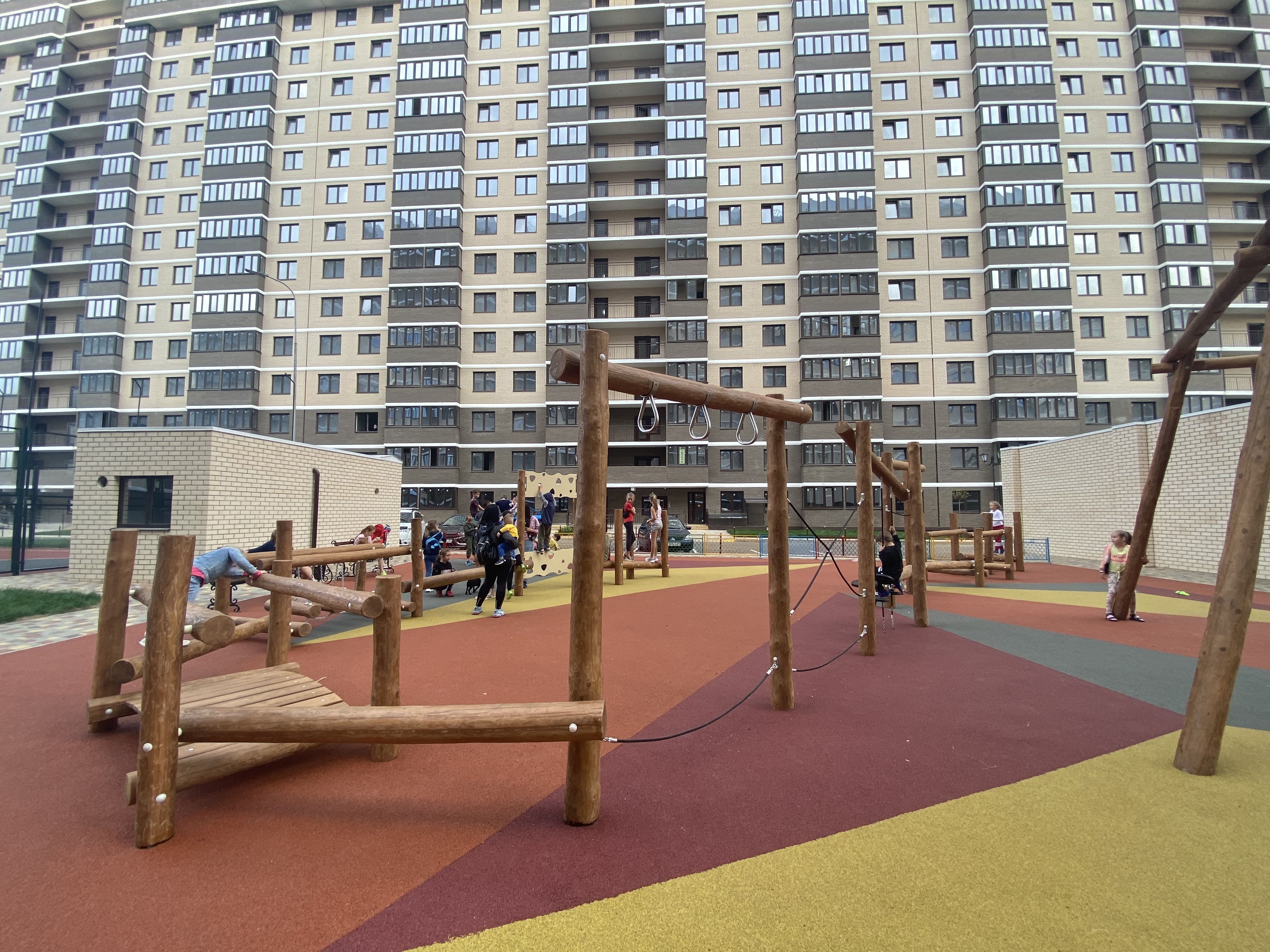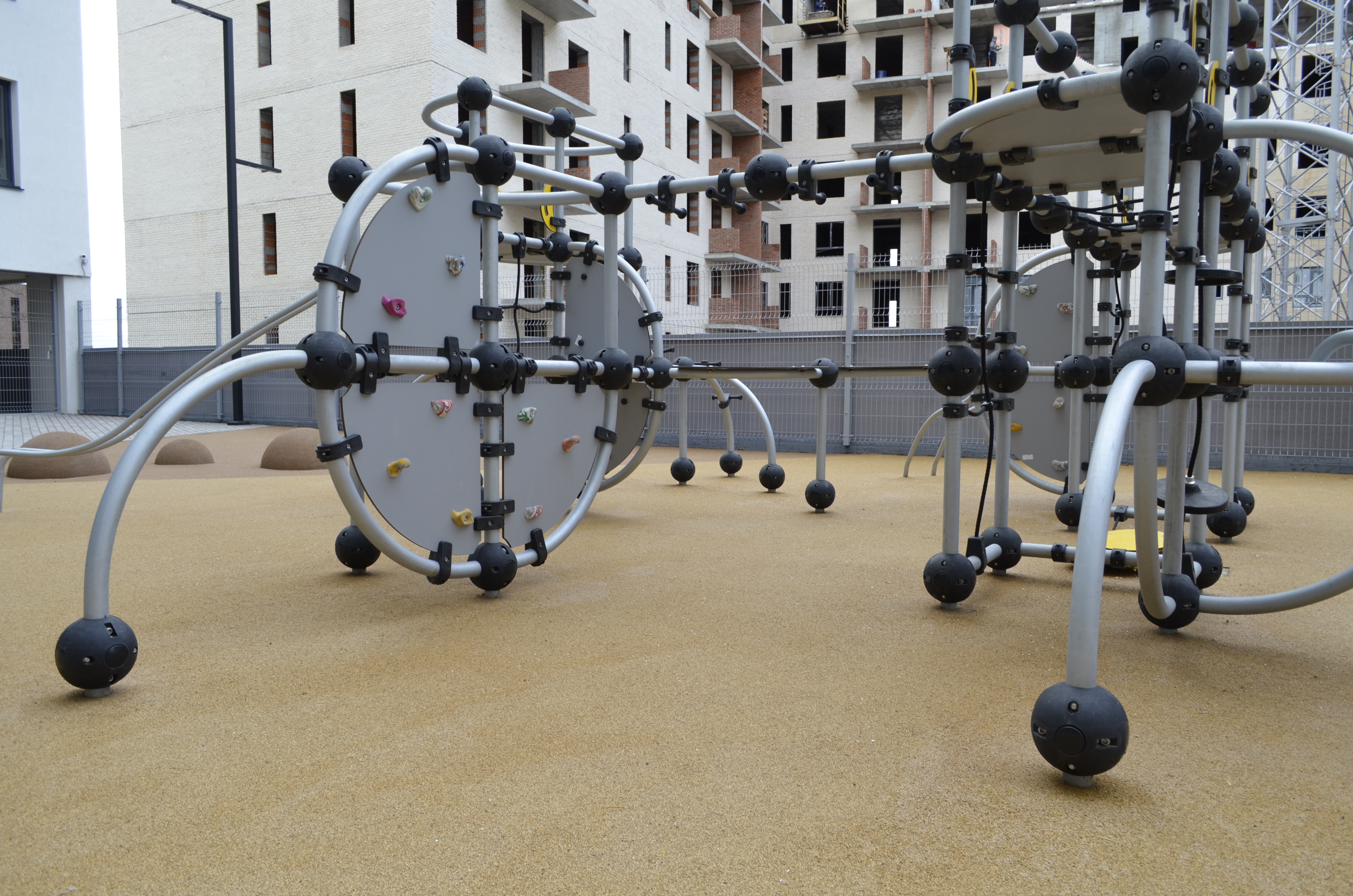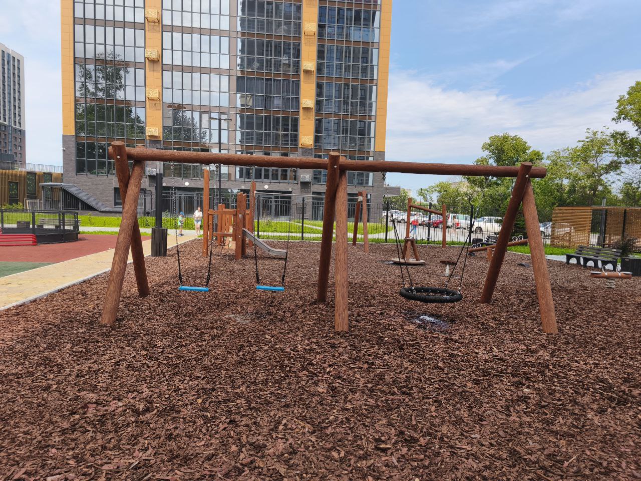 - Мягкие зоны приземления: Вокруг конструкции должна быть зона безопасности с мягким покрытием (например, резиновая крошка или искусственный газон) для смягчения падений и ударов.